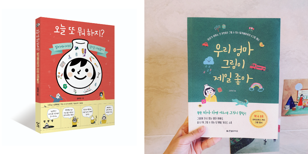 '우리 엄마 그림이 제일 좋아' 드로잉 튜토리얼 책 역시 유치원의 자유 활동 시간에 아이들이 서로 보려고 종종 실랑이가 벌어진다는 소식을 듣고 제 책들을 몇 권 기증했습니다. 제가 딸을 데리러 가면 아이들이 제 책을 보고 그린 그림을 보여주었는데, 다들 그림 솜씨가 점점 늘어가는 것이 보였습니다. (선생님들도^^!! ) 부끄러워서 제 눈을 잘 마주치지 못하는 아이들이 "책 너무 좋아요.."라고 해줘서 얼마나 고마웠는지 모릅니다.