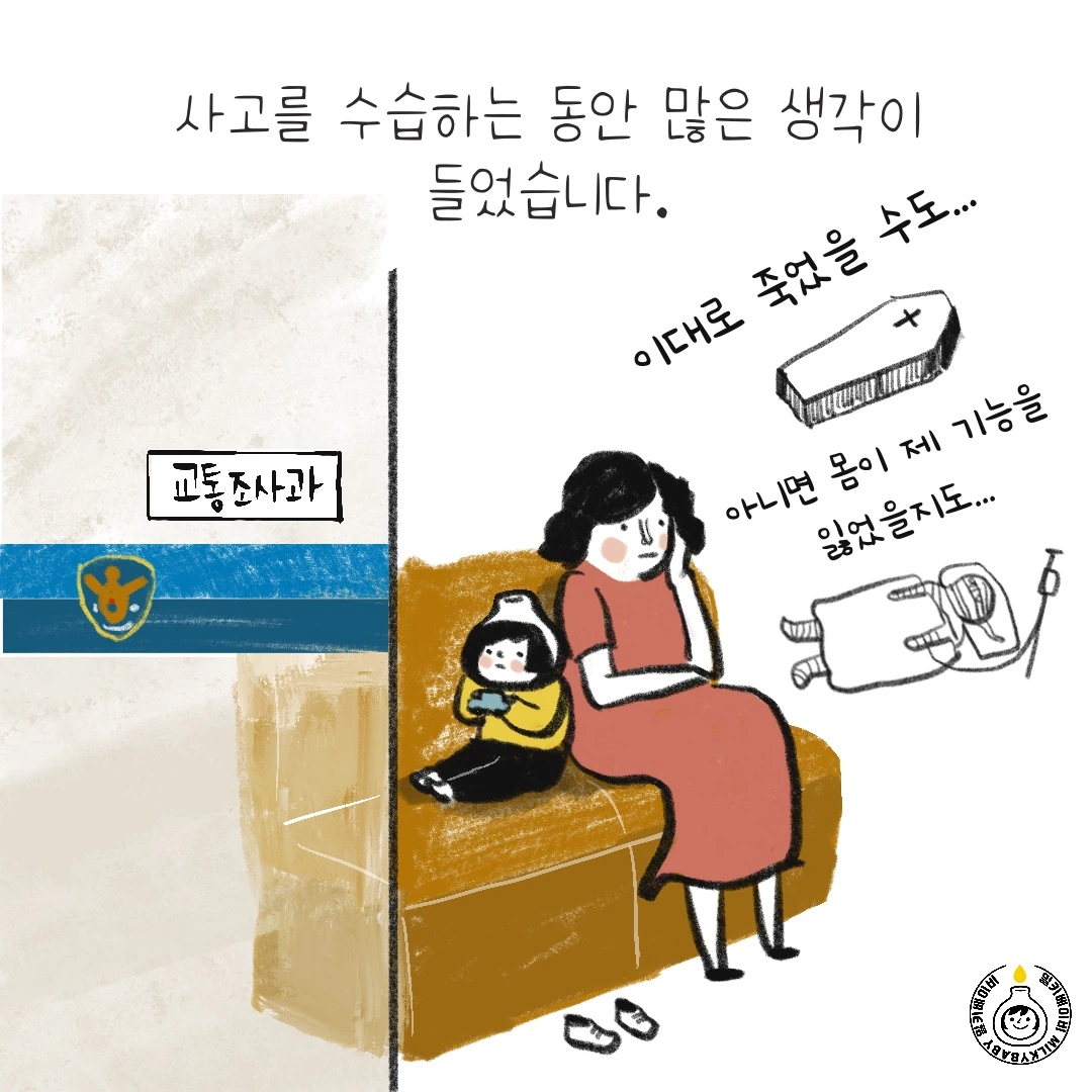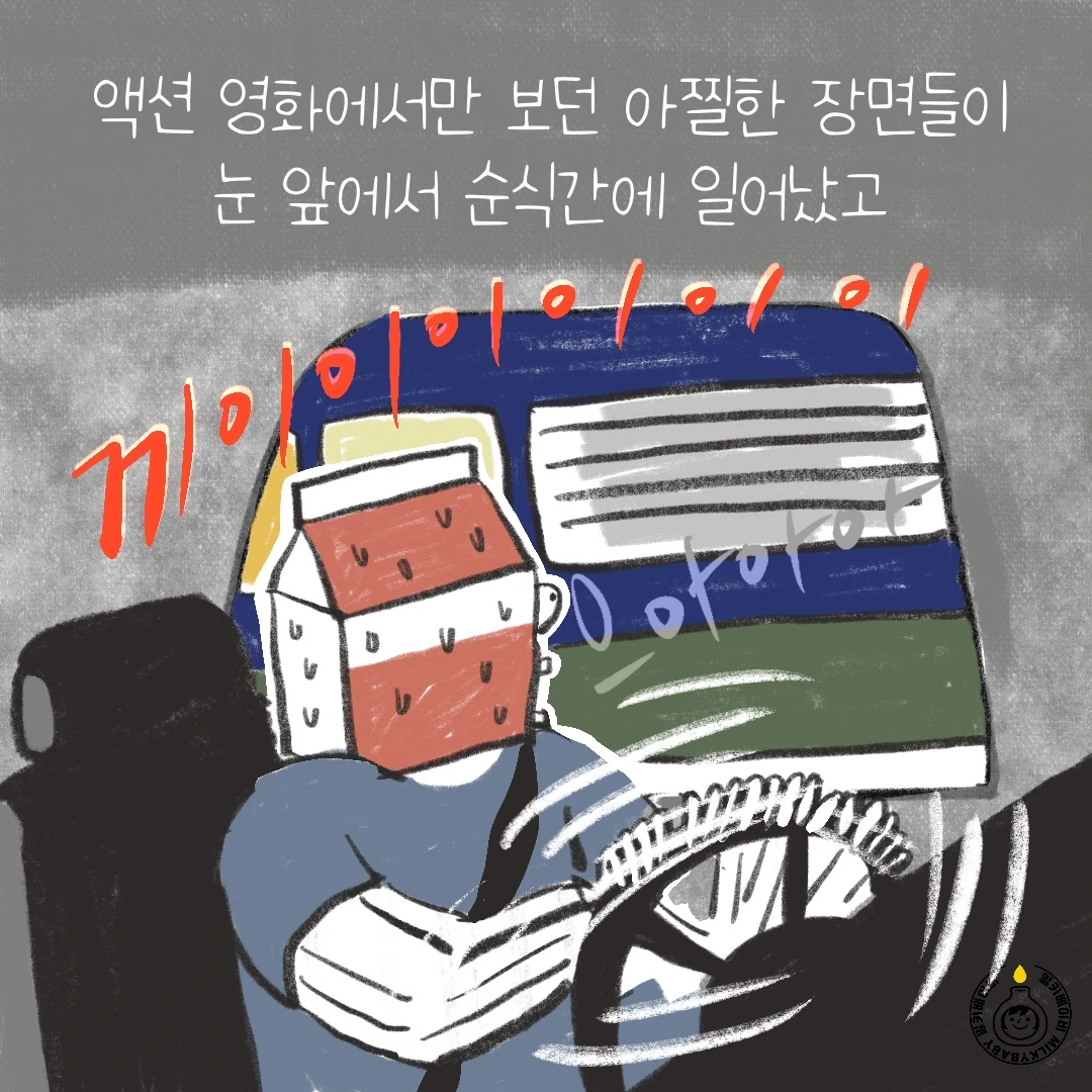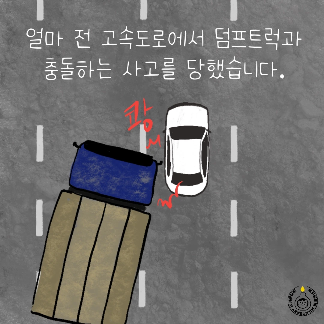 당연히 내일이 있다고 생각하며 살았는데, 죽을 뻔한 순간은 정말 짧았어요� 덤프트럭에 사각지대가 있다는 사실도 처음 알았네요.