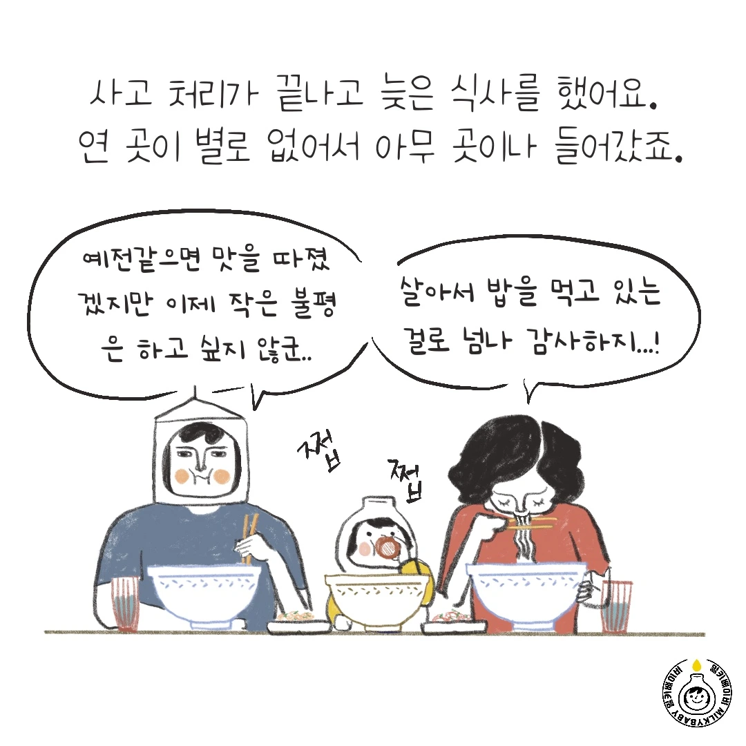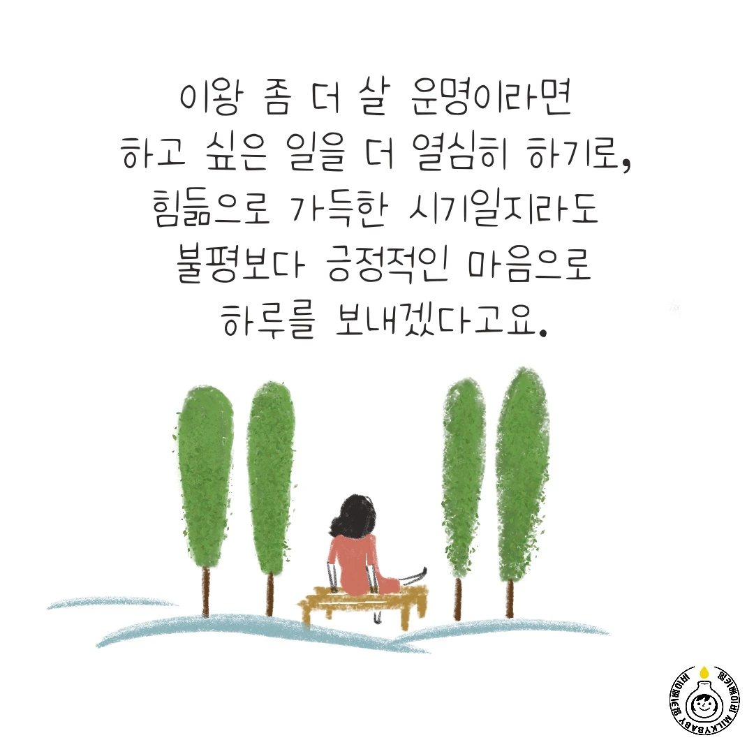 사람의 운명은 순식간에 뒤바뀔 수도 있고 인간의 힘으로는 어쩔 수 없다는 것도 절절하게 깨달았어요. 더불어, 이 사고 후 삶의 우선순위가 더욱 확실해졌어요. 내 삶의 가장 중요한 것부터 하기에도, 소중한 사람들을 챙기기에도 인생을 짧다는 걸 다시금 느끼네요.