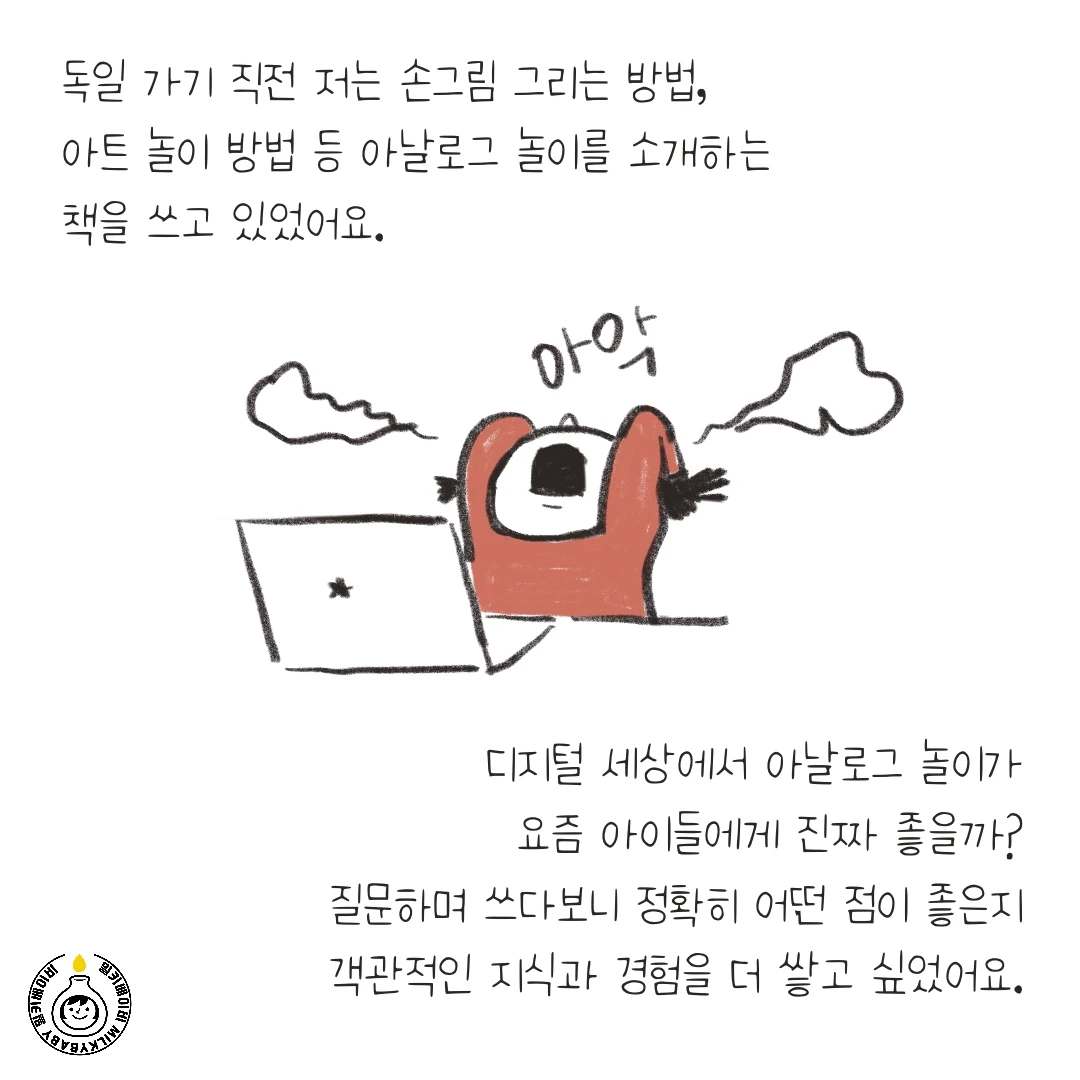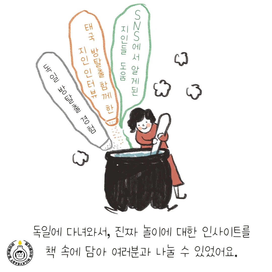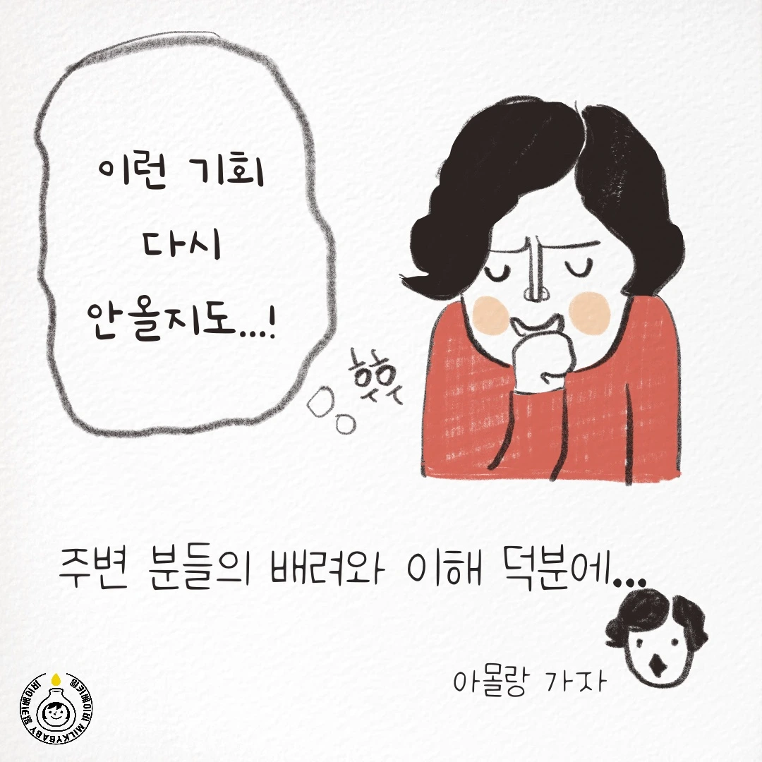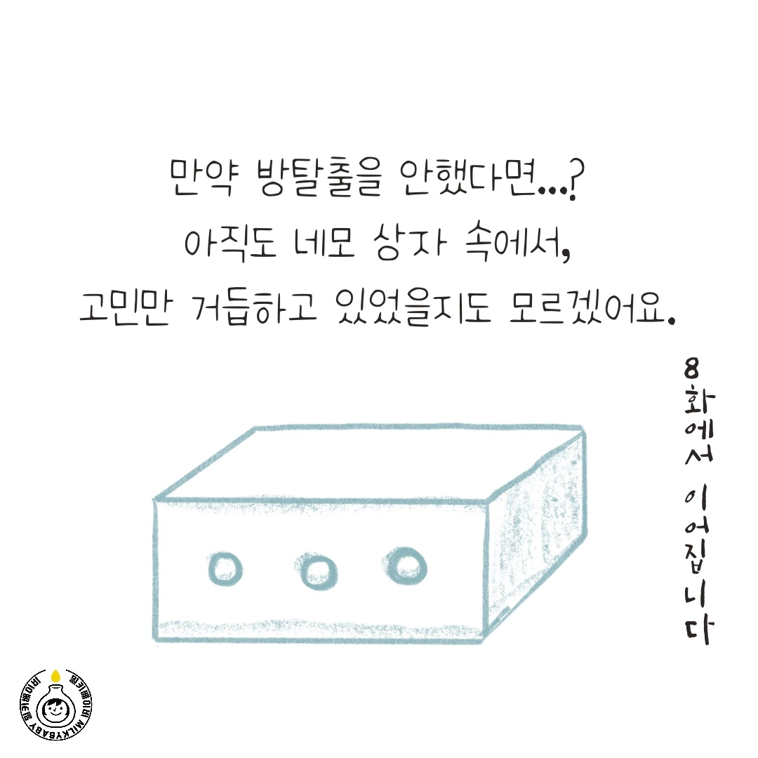 물론 탈출 후 기회는 본인이 만드는 것이지만, 아무것도 하지 않으면 기회가 절로 찾아오지 않아요. 고립감으로 힘들어하던 육아 초반에는 그림작가로 활동하는 4-5년 후의 저의 모습을 상상하지 못했어요. 차근히 마음을 열고 기회를 찾다 보면 분명 한 발짝쯤 나가 있는 자신을 보게 될 거예요.