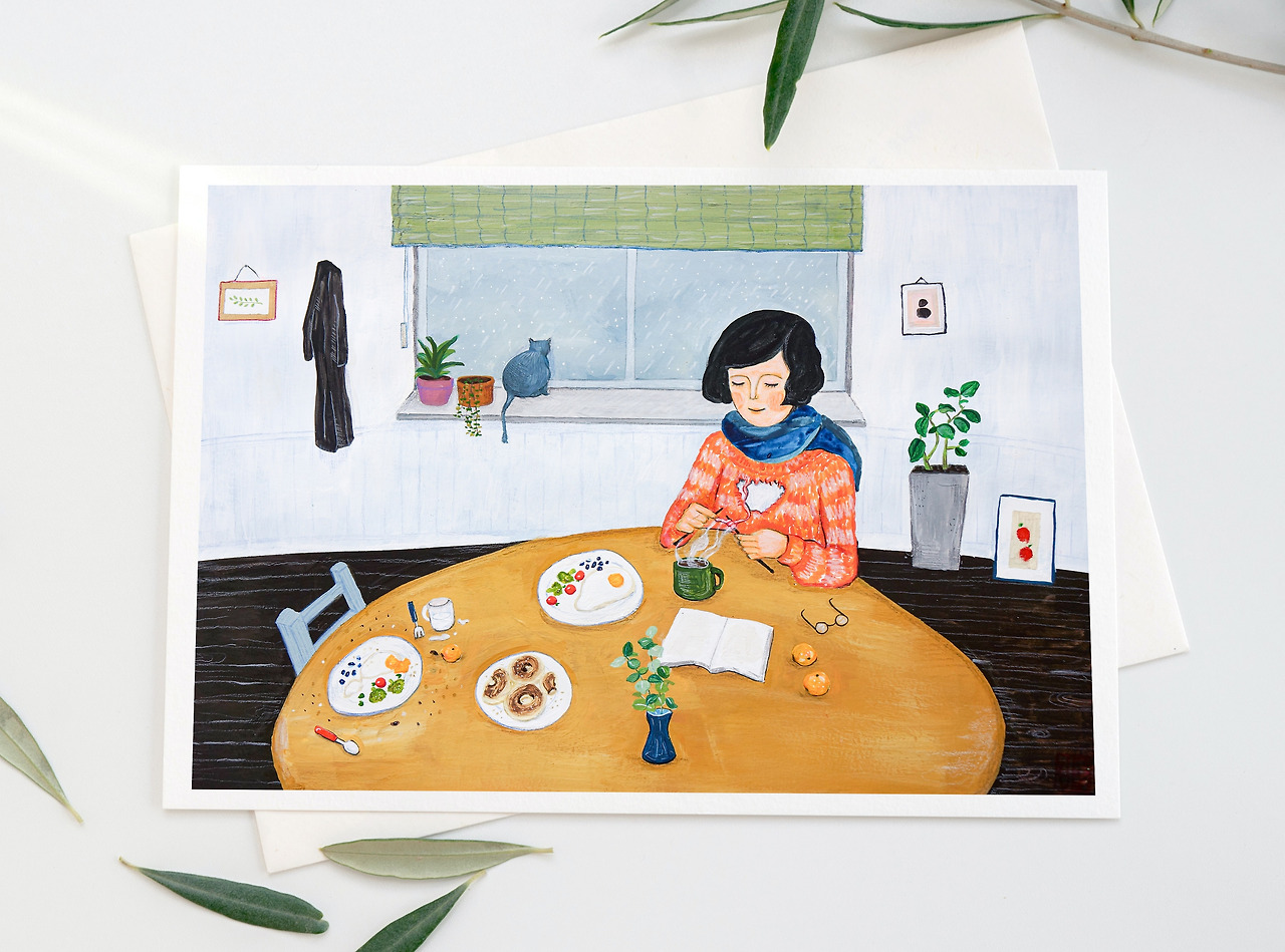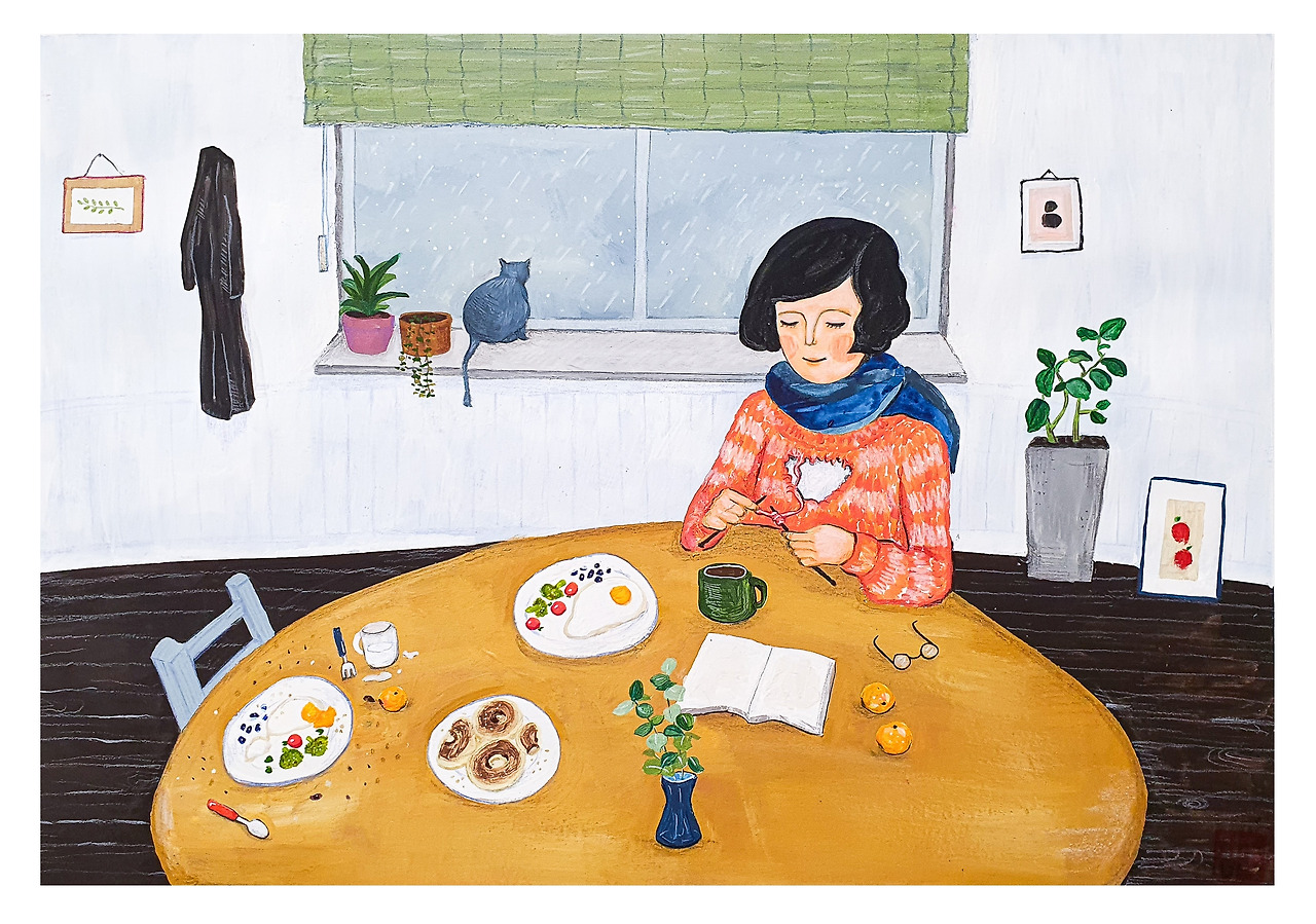 아이를 등원/등교시키고 난 후, 엄마는 빈 둥지 같은 집 안에서 쓸쓸함을 느끼기도 하고, 내 시간을 가질 수 있어서 홀가분하기도 합니다. 때로는 아이가 걱정되기도 하고 어느덧 훌쩍 지난 시간에 허탈하기도 합니다. 아이가 잠시 떠난 집에서 엄마는 마음을 뜨개질하듯 추스르고, 지친 몸을 잠시 달랠 수 있습니다.