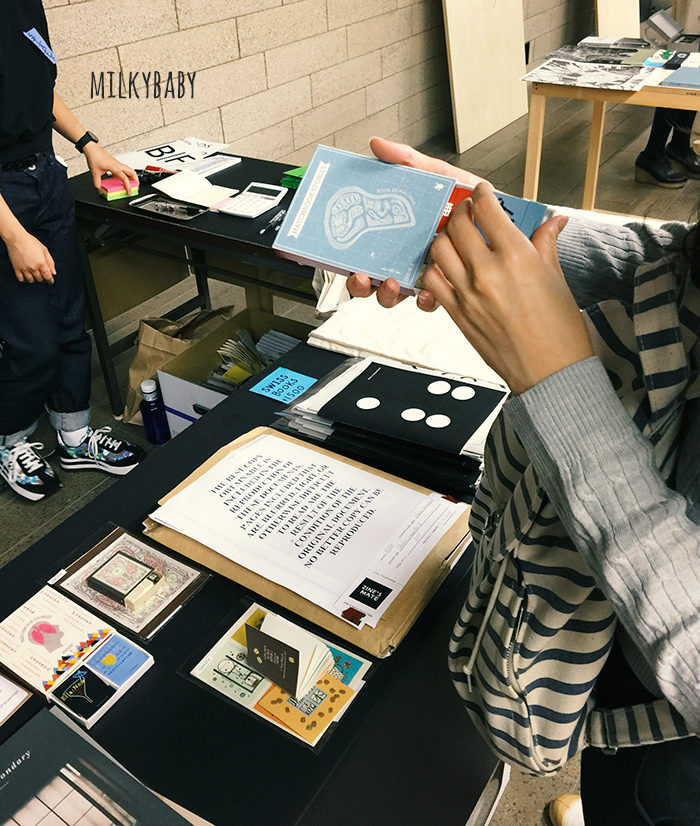 수 없이 많은 멋진 콘텐츠를 혹여 잊을까 봐 몇 가지 샘플들을 사모으고, 명함을 받고, 눈과 사진으로 최대한 많은 것을 담고자 했어요. 이 곳에서 접한 콘텐츠들은 제 책을 비롯해서 개별 아트웍을 하는 데도 많은 자양분이 되고 있어요. 도쿄 아트 북 페어는 제 기대보다 훨씬 내용도 충실해서 디자인과 일러스트레이터를 업으로 하는 저로썬 내년에도 참가해보고 싶은 마음이 드네요. 저랑 같이 내년에 나가보실 분 지금부터 모집해요^_^ (갑자기 모집공고^^;)