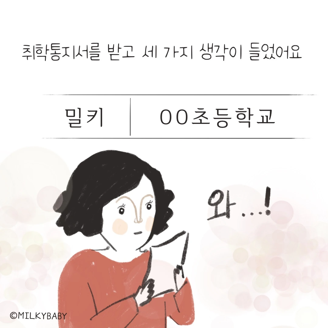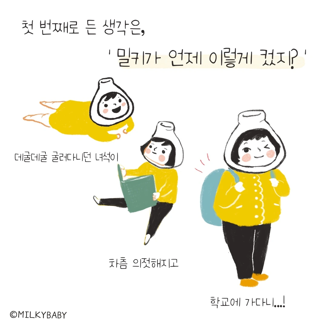 나이 먹는 법은 알려준 적 없는데 벌써 엄마가 해줄 것이 조금씩 적어지고 있네요. 밀키와 함께 여러분의 자녀분들도 한 살 한 살 부지런히 자라고 있죠? 이미 취학 통지서를 받아든 분들은 어떤 기분이 드셨는지 궁금합니다.