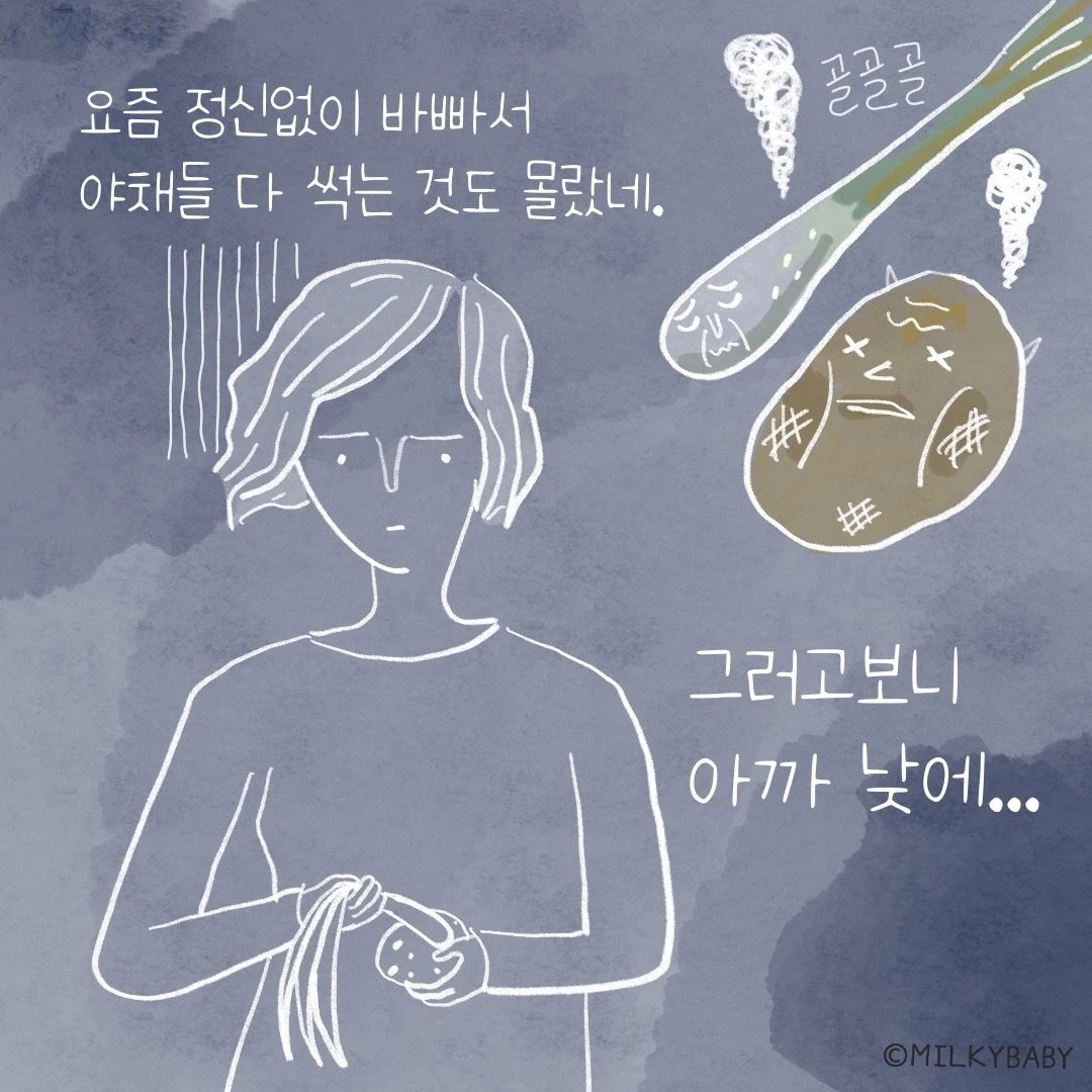 이번 그린 밀키 에피소드를 그리면서 이 시절 썼던 저의 일기를 쭉 다시 읽어봤어요. 처음 세상에 나온 밀키를 만난 순간의 기쁨과 놀라움, 그리고 이어지는 슬픔과 비참한 기분들 모두 생생하게 다시 살아났어요. 기록이란 참 중요한 것이죠. 훗날 이 에피소드를 보면서는, 지금보다 부쩍 나아진 가족의 건강과 무탈한 하루에 감사하는 시간을 가질 수 있었으면 해요.