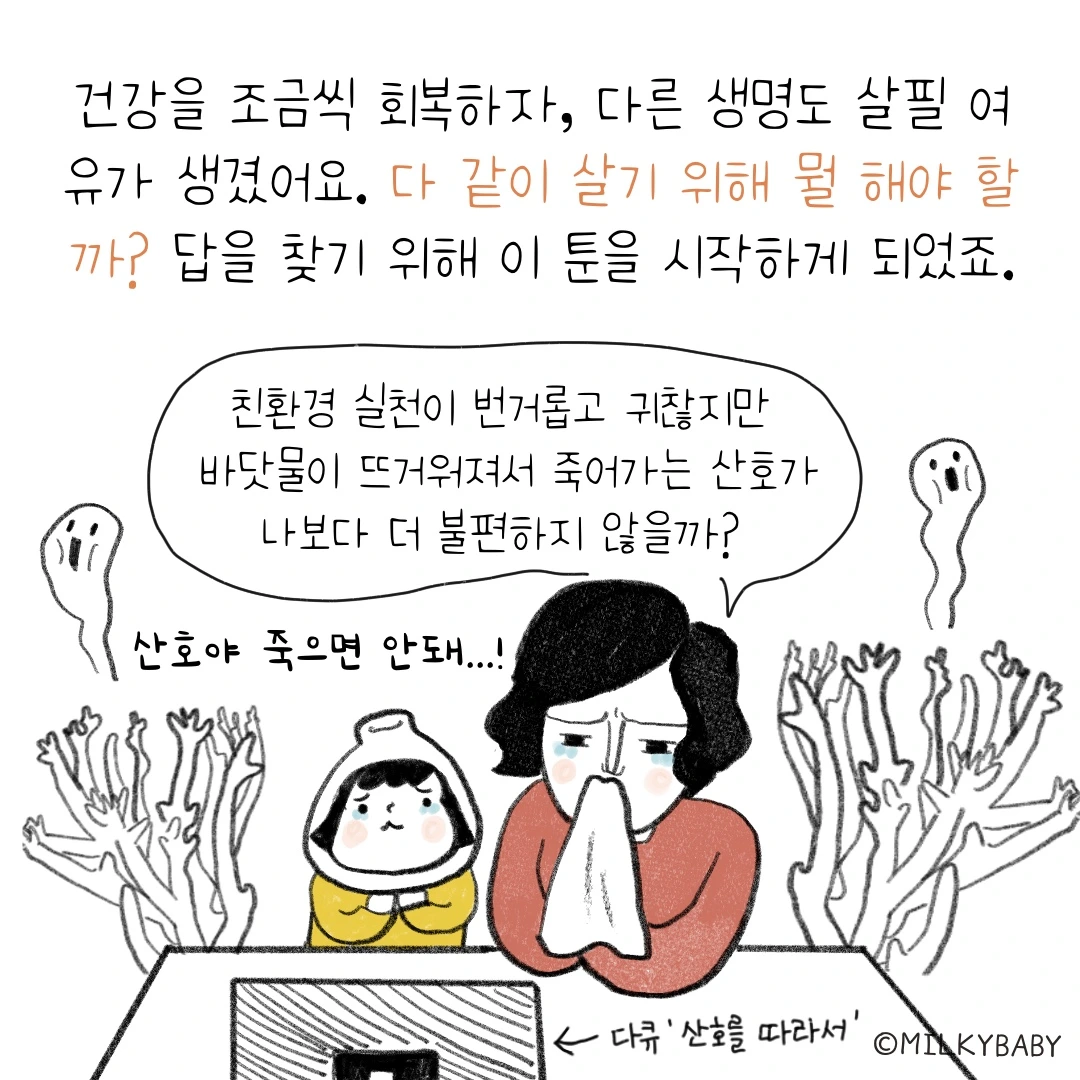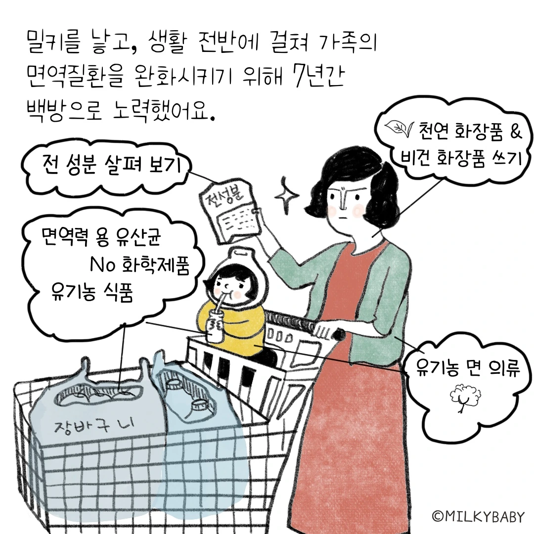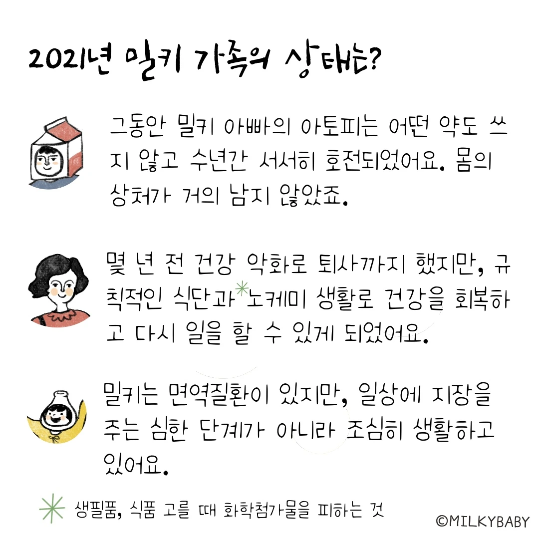 어떤 제품이나 해결책을 소개해 드리려고 시작한 건 아니기에 답을 구하시는 간절한 분들께는 죄송스럽기도 하고요...같은 질환으로 고민을 하고 계신 분들, 마음의 여유는 각기 다르겠지만 공감해 주시고 밀키베이비 연재를 기다려 주셔서 늘 감사해요. 오늘도 건강하시길!