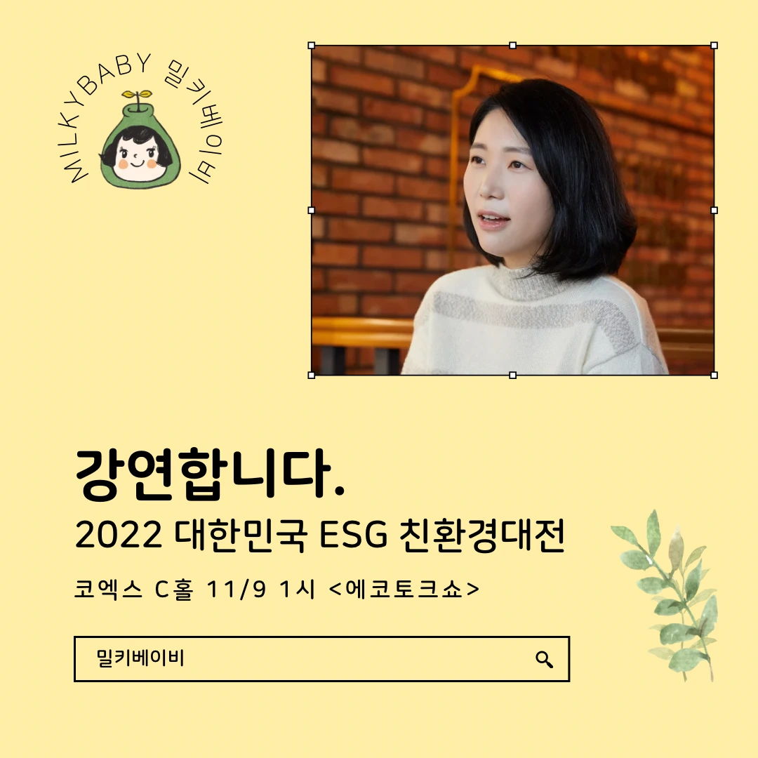 2022년 대한민국 esg 친환경대전의 <에코 토크쇼>에서 강연을 하게 되었습니다.