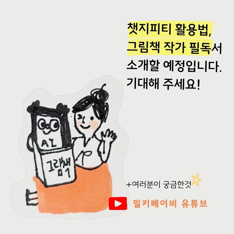 나만의 콘텐츠를 준비하고 있지만, 불안하고 막막한 분들을 위한 필수 가이드. 밀키베이비의 다음 영상에서는 이번에 따끈따끈하게 출간된 제 #환경그림책 <쓰레기차> 제작 팁과 #챗지피티 활용법, 그림책 공부법을 다룰 예정이니 기대해 주세요!