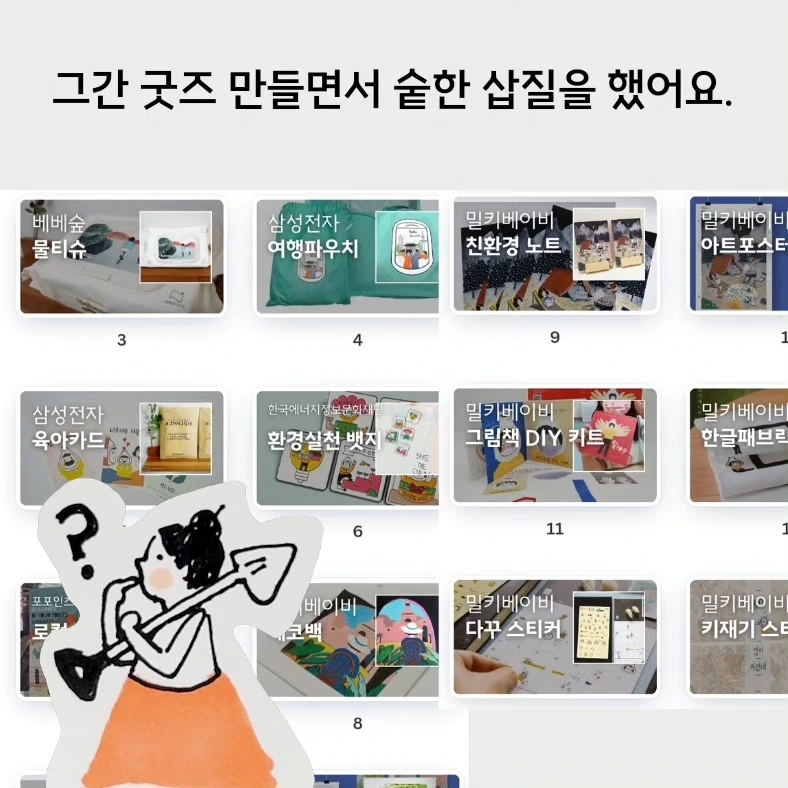 대기업 콜라보부터 자체 제작까지 다양한 굿즈를 만들어 본, 밀키베이비의 숱한 경험을 정리하여 여러분과 인사이트를 나눕니다. #인공지능창작 #지속가능한 창작