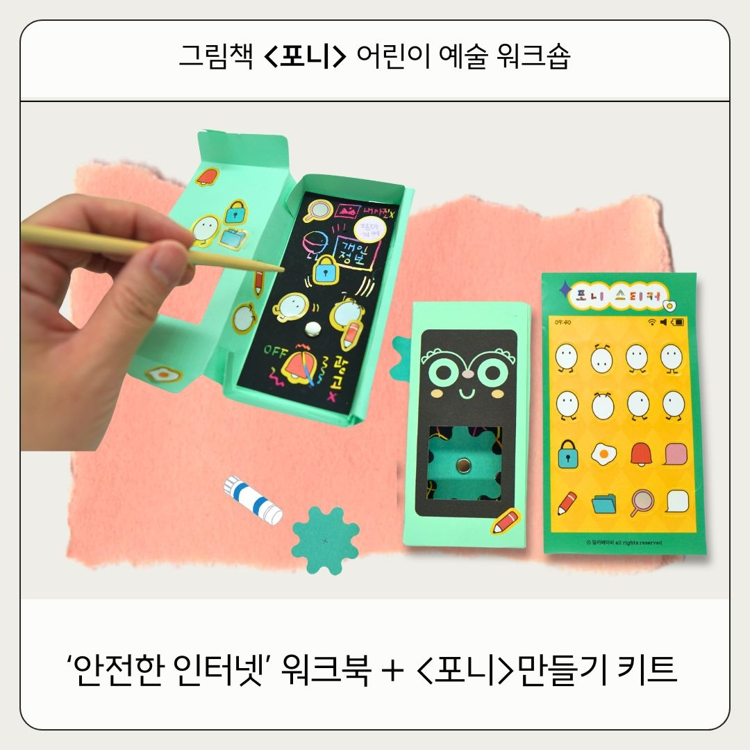 그림책 포니 작가 특강 및 워크 키트는 인터넷 세상의 기본적인 작동 과정, 해악, 장단점을 보는 눈을 열어주고, AI와 같은 최신 기술을 대할 때, 주체적으로 생각하고, 탐구하는 태도를 갖도록 도와줍니다.