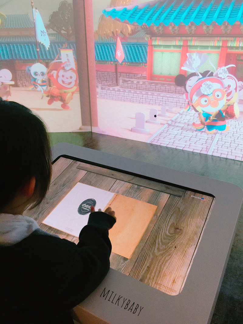 밀키 재우기 1단계. 인천공항에 마련되어 있는 키즈존에서 땀 흘리게 만들기. 제가 갔던 키즈존은 놀이시설이 철거되었는지 텅 비어서 실패! 2단계. 키즈존 맞은편에 있는 "캐릭터와 함께하는 궁궐여행"에서 놀기로 했습니다. 뽀로로, 코코몽 등 캐릭터와 사진도 찍고, 터치하는 색칠놀이도 할 수 있습니다. 어디서 많이 본 것 같아서 살펴보니 저의 ex직장에서 만든 것...Ex-boyfriend를 만났을 때의 묘한 기분이 이런 걸까요. 회사가 한참 잘 나갈 때 4D 테마파크를 만드는 프로젝트를 빡세게 했던 기억이 나데요.