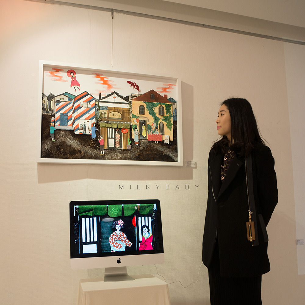 전통문화와 옛 건축물이 버려지지 않고, 현대의 예술로 그 생명력을 이어나가는 것이 이번 연수 중 가장 인상깊었던 점입니다. 100년 된 고택에서 마이코의 전통을 이어가는 모습, 옛 서양식 건물에서 열리는 크래프트 마켓, 폐교였던 곳을 아트복합시설로 만든 아트치요다 3331등 제가 실제로 경험한 것만도 무수히 많습니다. 예술이 인간의 삶과 밀접하게 맞닿아 있고, 주변의 삶을 더 풍요롭게 하는데 쓰일 수 있다는 사실을 직접 눈으로 보았죠. 옛것을 재생시키는 것에 예전부터 관심이 많았고, 이번 작품에 관련한 메세지를 넣었습니다.