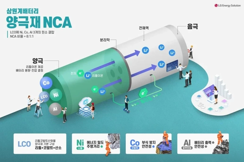현재 배터리 시장은 양극재로 리튬 인산 철 소재를 사용하는 중국과 니켈 코발트 망간 알루미늄같은 소재로 3원계(니켈 60%, 코발트 20%, 망간 20%)를 사용하는 한국이 세계적으로 인정받고 있다.