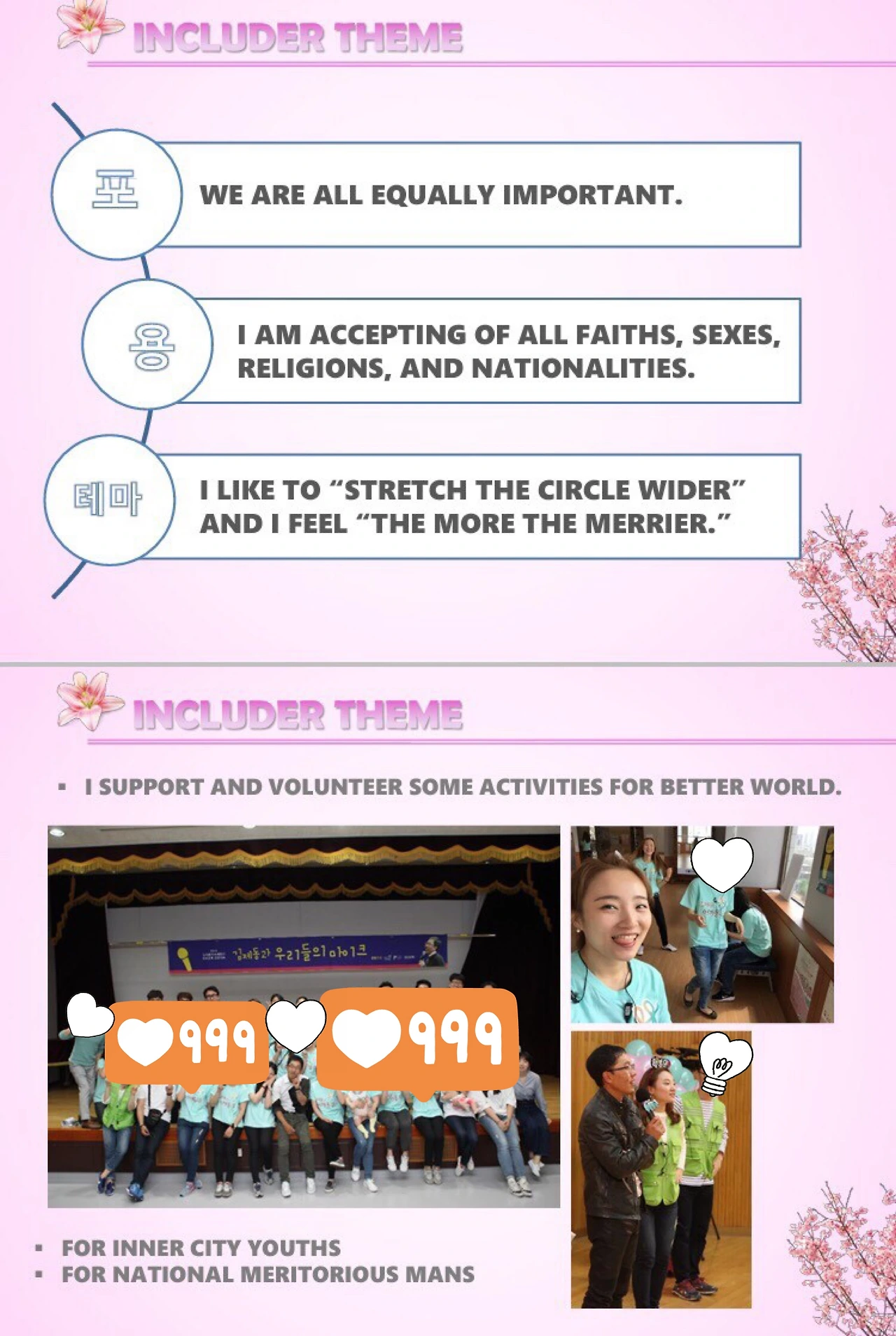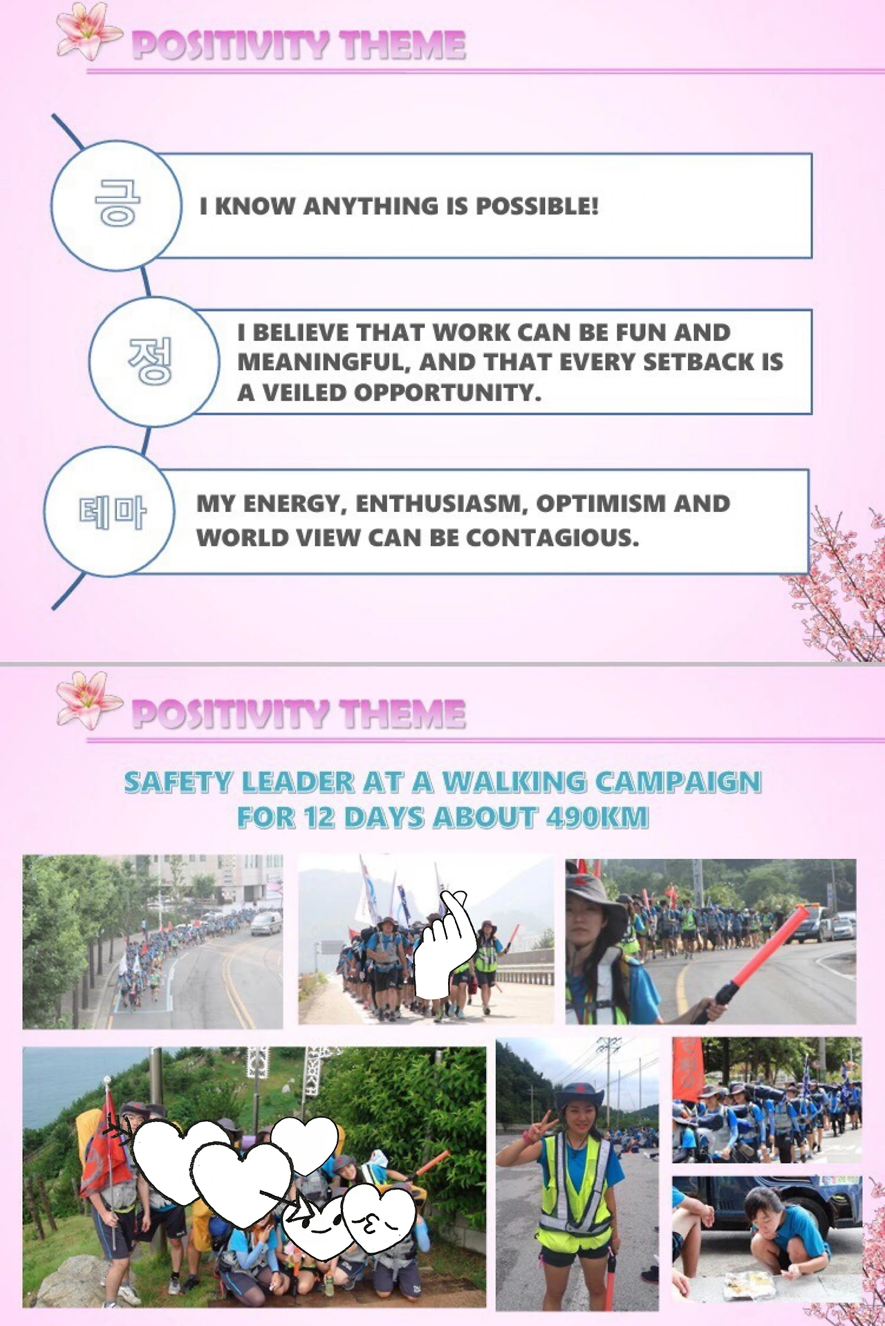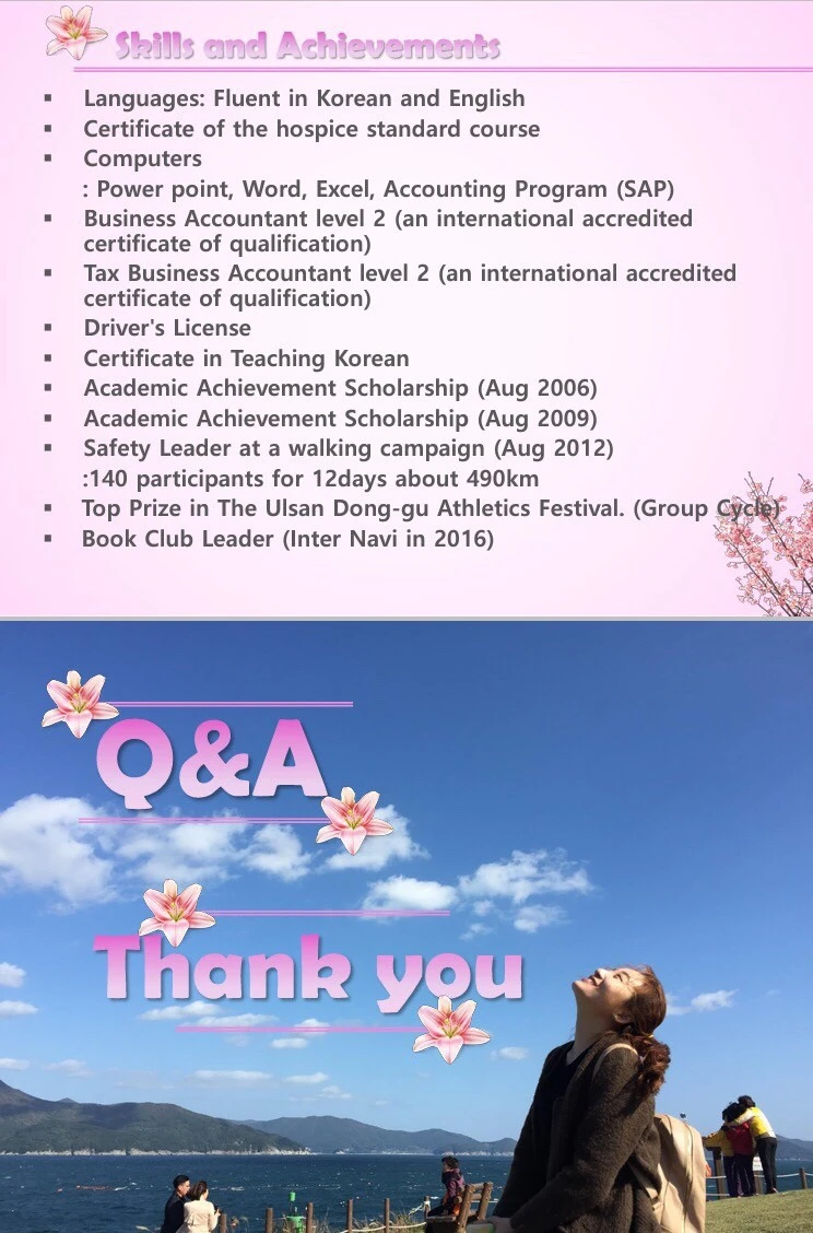 지금까지의 인터뷰 경험상 특히 연세가 있을수록 한국이 어떤 나라인지 잘모르는 듯했다. 그래서 한국에서의 내 일상과 경력을 담아, 나를 소개하기위해 만들었다. 강점 소개를 빙자하였지만, 한국 환경 수준, 인프라와 내가 어떤 사람인지, 적어도 안전한 사람이라는 것을 검증하기 위한 것이었다.