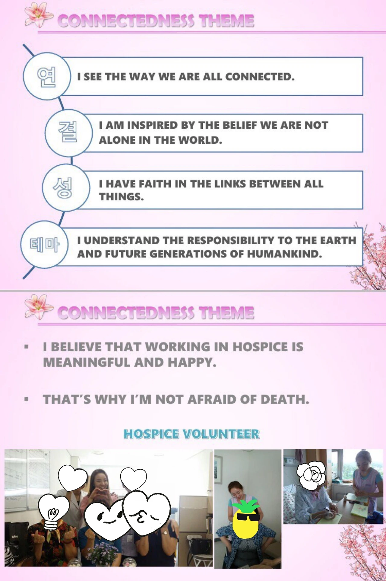 호스피스 인사담당자와 우연히 흡연구역에서 마주치고 그녀가 온화한 미소와 동정섞인 눈빛을 보냈을 때, 나는 이것이 기회임을 본능적으로 알아차렸다. 집에 돌아와서 간절함을 가득 담아 메일을 썼다. 영국의 선진 호스피시 병원에서 얼마나 간절하게 일하고 싶은지, 어떤 일이든 호스피스 병원에서 일할 수만 있다면 영광일 것이며 내가 할 수 있는 일이 없다면 봉사활동이라도 꼭 하고 싶다고 적었다. 영어 프리토킹에 약해서 그렇지, 한땀 한땀 공들여서 글을 쓰는 것은 자신 있었다. 그리고 인터뷰를 위해 작성해 두었던 인생 바인더를 첨부했다.