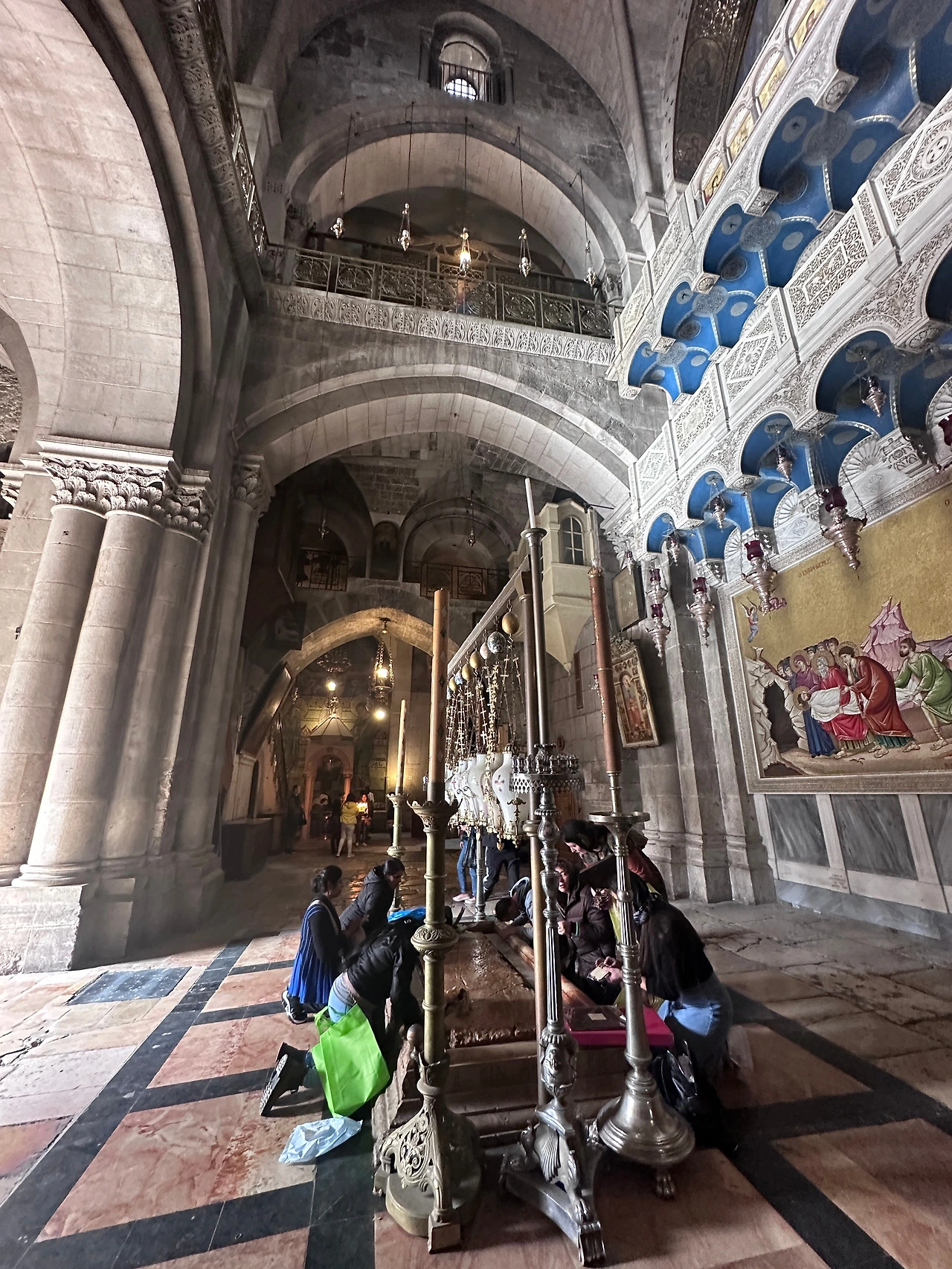 벽 옆의 허름하게 만들어진 목재 통로가 동예루살렘으로 이어지는 길이라는 것도 현장에서 알게 되었다. 전쟁이 겹치기도 했고, 아주 제한적인 시간에만 개방한다고 했다. 통곡의 벽 주변의 지하?처럼 보이는 통로로도 동예루살렘에 갈 수 있었는데, 여기는 무슬림만 통과 가능하다는 문이었다. 종교와 공간이 겹쳐 있는 도시, 예루살렘답게 크고 작은 종파가 나눠 관리하는 성묘교회 내부는 화려하면서도 경건했다.