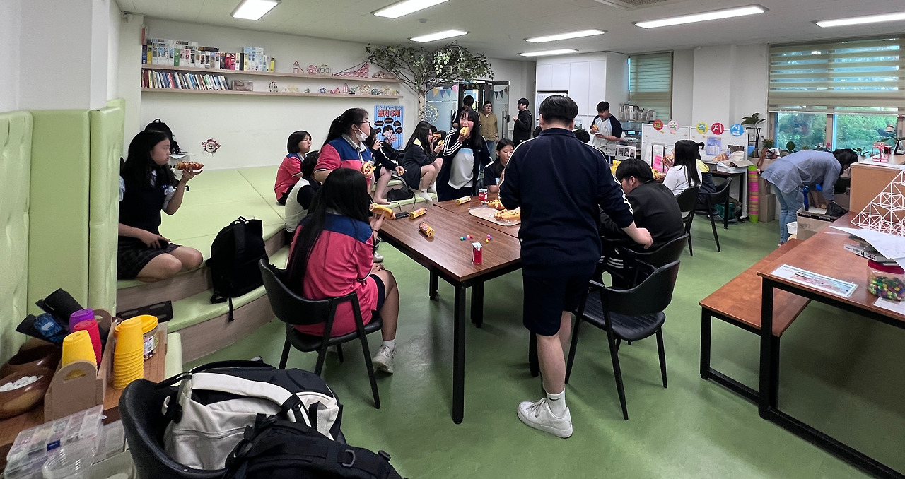 아이들이 놀이 부스를 준비하는 동안, 나는 교육복지실에서 간식을 준비했다. 미리 가져온 소시지를 빵에 넣고 소스를 뿌리는 간단한 일이었지만, 50인분의 핫도그를 만드는 일은 결코 쉽지 않았다. 놀이 부스 준비를 마친 아이들이 하나둘 복지실로 들어와 남은 일을 함께 도와주었다. 놀이활동을 하면서 아이들이 한결 더 적극적으로 변한 것 같았다.