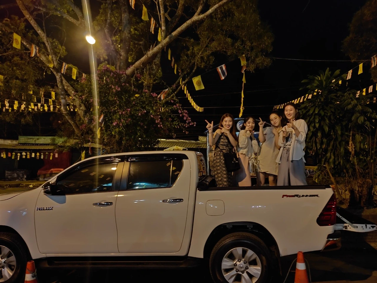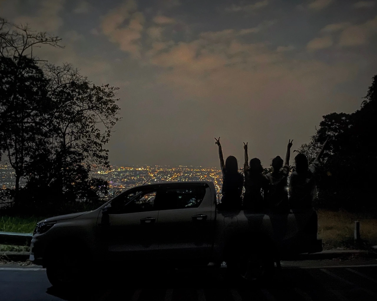 이 말을 듣자마자 우리 넷은 약속이라도 한 듯 예스를 외쳤고, 험하다는 꼬불꼬불 길을 차 트렁크에 앉아 서로를 붙잡으며 노래를 틀고 내려오기 시작했다. 우리는 서로 우리가 너무 멋진 것 같다며, 언제 차 트렁크에 타서 오겠냐는 말을 나누며 웃어댔다. 중간 지점쯤 와서 민준은 차에서 내려 야경과 트렁크에 타고 있는 우리 모습을 카메라 담았다.