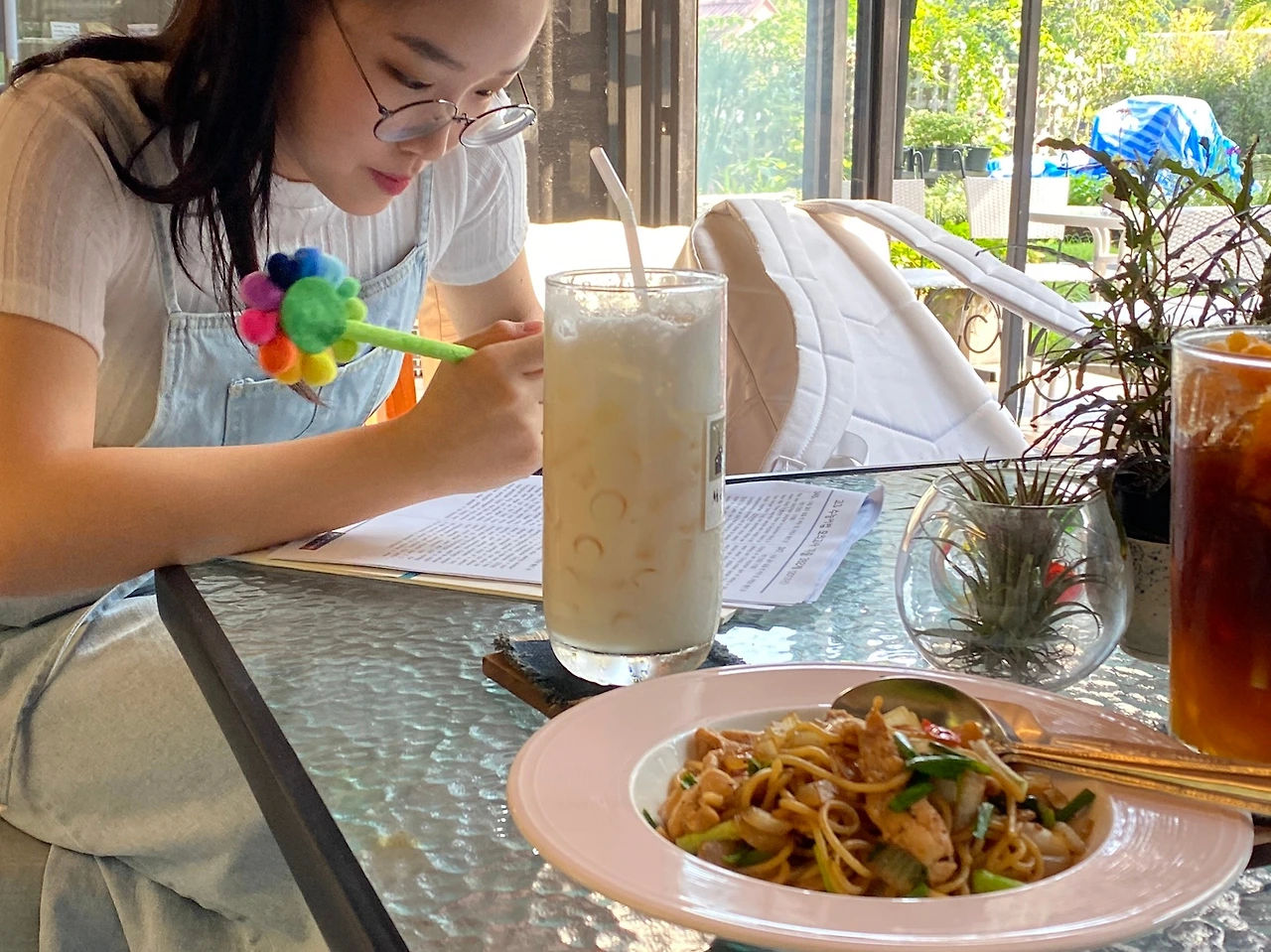 “여기 보세요~ 어머. 치앙마이까지 와서 숙제를 하시나 봐요. 어쩔 수 없는 한국의 고등학생이신가 봐요”