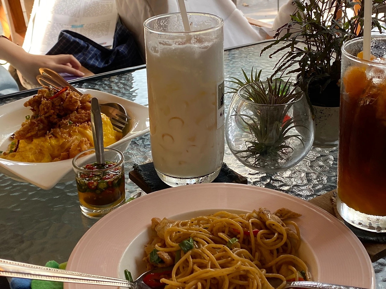 친절한 아주머니가 보여주시는 메뉴판에는 각종 메뉴에 대한 그림이 있다. 아 이번엔 제발 실패하면 안 될 텐데. 음료를 실패하는 건 눈감아 줄 수 있지만 음식을 실패하는 건 정말 최악이다. 고민 또 고민하며, 제일 무난해 보이는 블랙페퍼 파스타를 골랐다. 후추랑 파스탄데, 맛이 없을 순 없겠지. 얼마 시간이 지난 후 음식이 나왔고, 포크에 돌돌 말아 한 입 먹자, 바로 탄성이 나왔다. 와 이거지. 초등학생 입맛인 나한테는 딱이다. 그렇게 맛있는 점심 식사를 하고 음료를 먹으며, 아까 반캉왓에서 찍었던 사진들을 구경하고 있는데, 서영이가 조용하다.