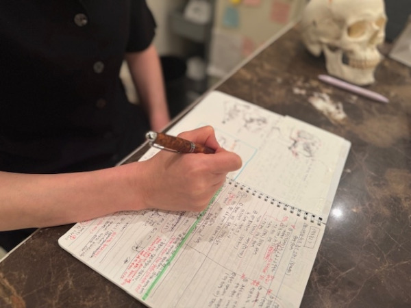 줄자로 얼굴을 재는 고객, 종이로 윤곽을 오려오는 고객,
