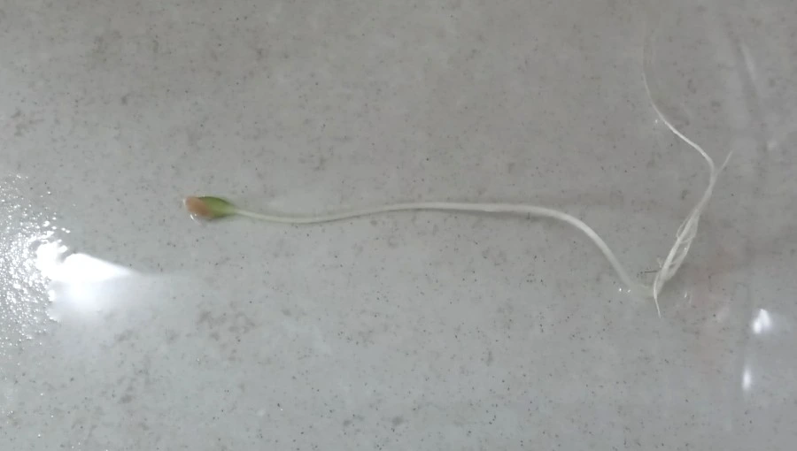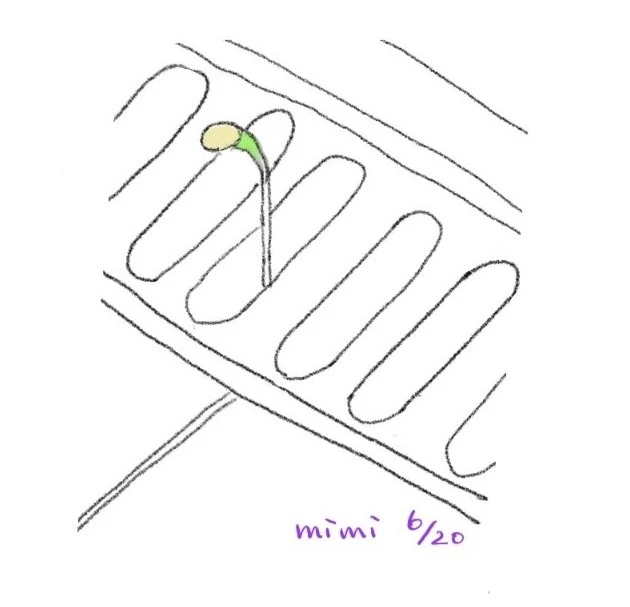 새싹을 발견하기에는 너무나 의외의 장소라 내 눈으로 보면서도 긴가민가. 머리카락과 개털로 휘감긴 채 끌려나온 뿌리를 보고야 녀석의 정체를 알아챘다. 추측컨데, 씨앗이 식구들 중 누군가의 발바닥에 묻어 욕실로 옮겨진 뒤에, 물에 쓸려 냄새가 올라오는 것을 막기 위한 하수구의 장치 안으로 흘러들어간 모양이다. 지저분한 것들을 떼내고 자세히 봤다. 참외 싹이다. 잔뿌리도 제법 나왔다. 빛을 못 보고 물만 먹어, 하릴없이 길기만 한다.