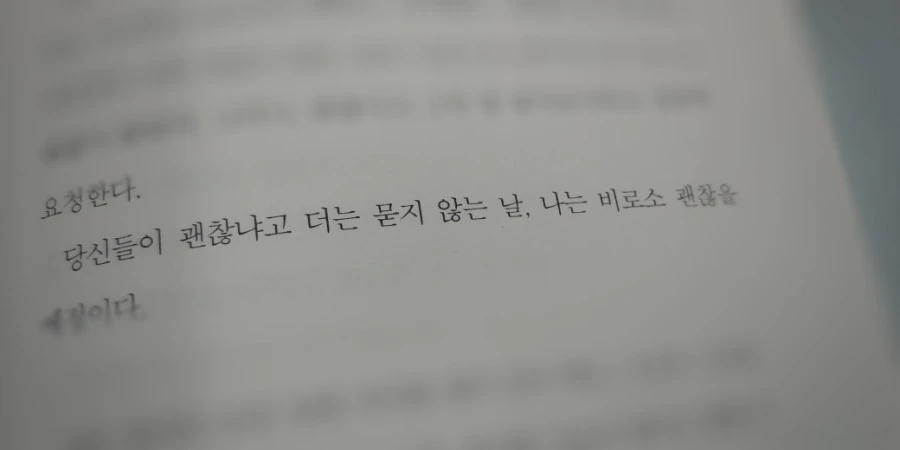 정상적이지 않은 몸에 적응해야 하고, 아픈 몸 때문에 지친 마음도 다스려야 하고, 괜찮냐고 묻는 사람들의 안부에도 반응해야 하는 상황이 어떻게 괜찮을 수가 있을까요? 묻지 마세요. 괜찮아지면 괜찮다고 말하게 될 겁니다.