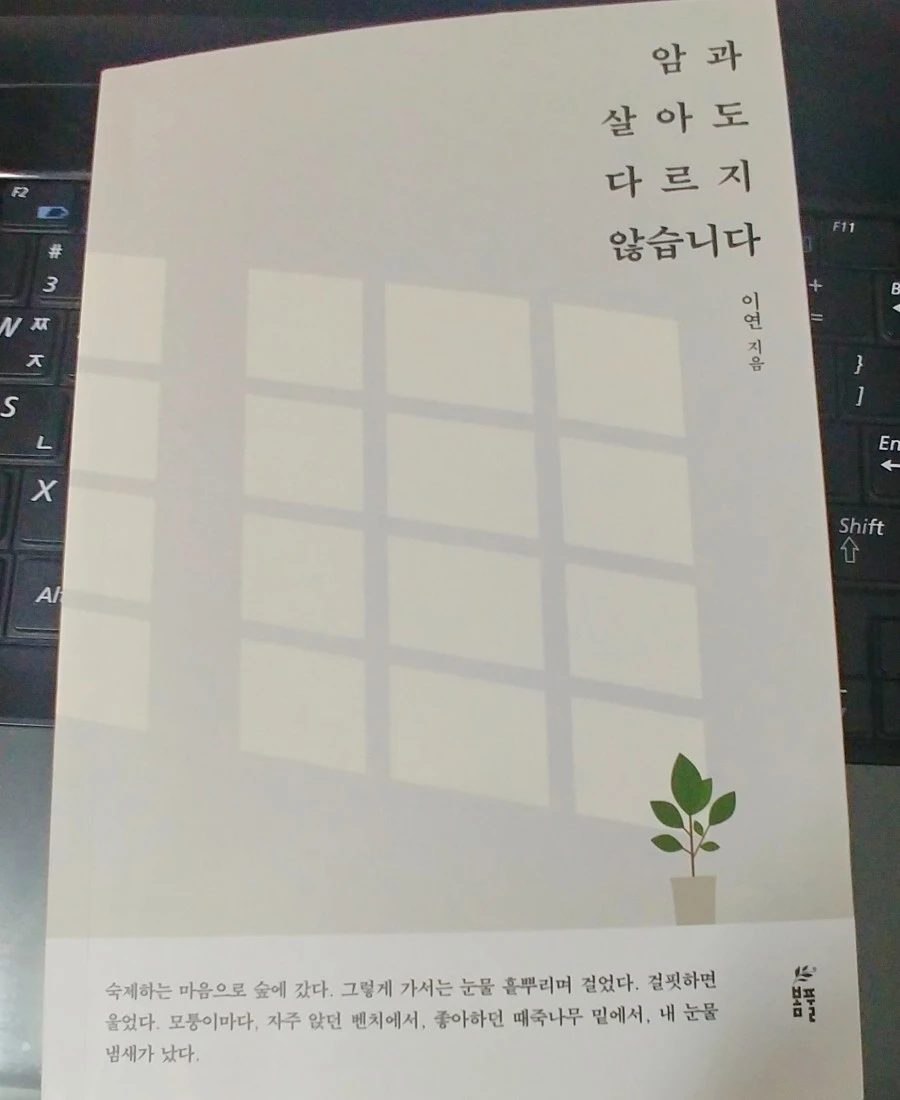 <암과 살아도 다르지 않습니다> 봄풀 출판사에서 펴낸 이 연 작가님의 저서입니다. 처음 이 책을 만났을 때 꼭 읽어보고 싶은 마음이 앞섰습니다. 그러나 선뜻 구매하지 못했어요. 이 책을 읽는 동안 겪어온 아픔이 그대로 되살아날까 봐 망설여졌습니다.