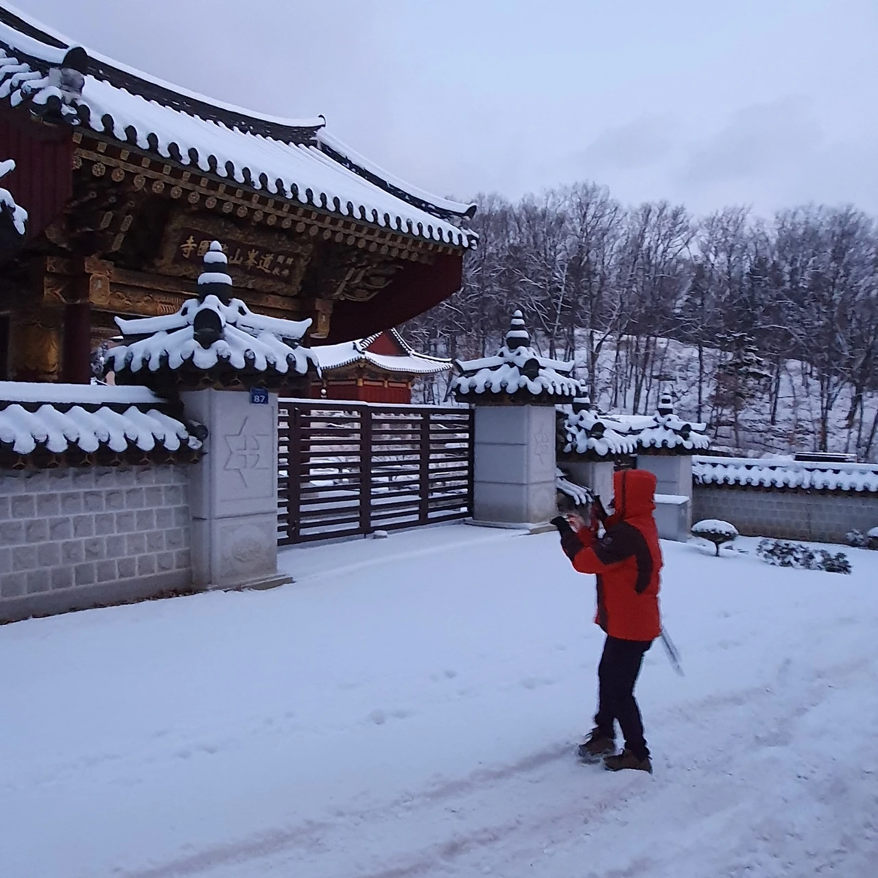 좋은 위치에 자리 잡은 사찰의 모습도 아름답다. 눈 쌓인 모습으로 변하면서 삭막함이 사라진 전혀 다른 모습으로 다가온다. 현실적으로 많은 불편함을 안겨주지만 낭만과 설렘을 안겨주며 어른의 마음까지 녹아들게 만드는 것은 눈이 주는 또 다른 선물이다.