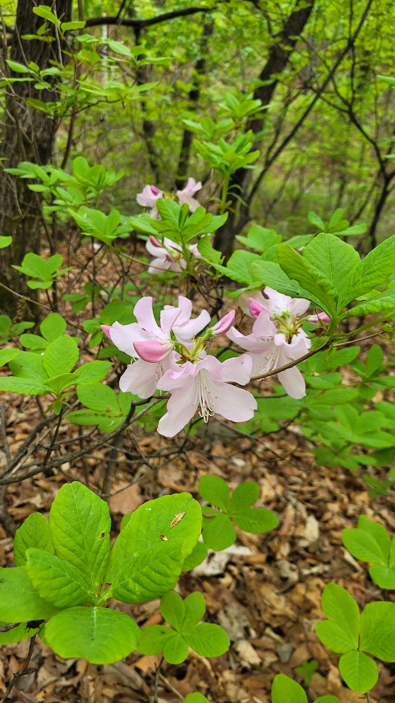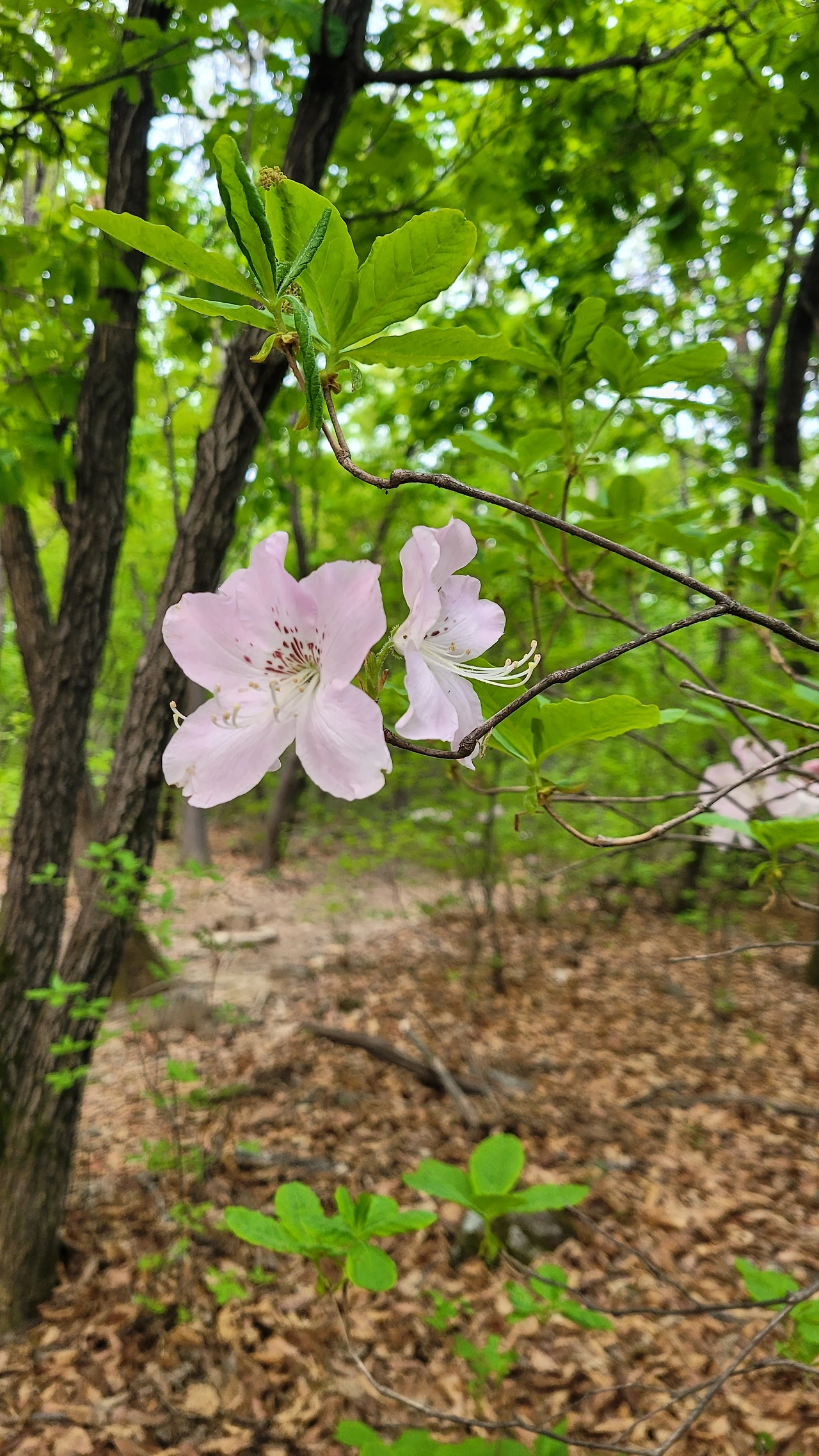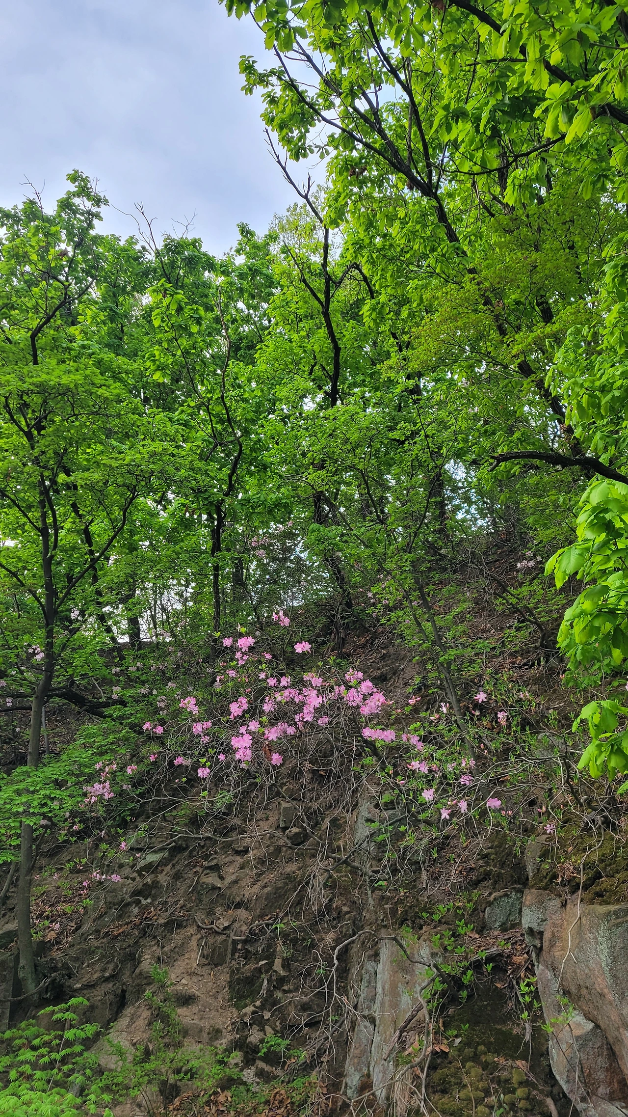 바스락거리는 마른 나뭇잎 속에서 싱그럽게 자라난 초록빛 나뭇잎을 보고 있노라면 무엇이든 다시 시작할 수 있다는 용기와 힘을 전해주는 듯하다. 잠시 발길을 멈추고 초록과 잘 어울리는 연분홍 철쭉을 바라본다.