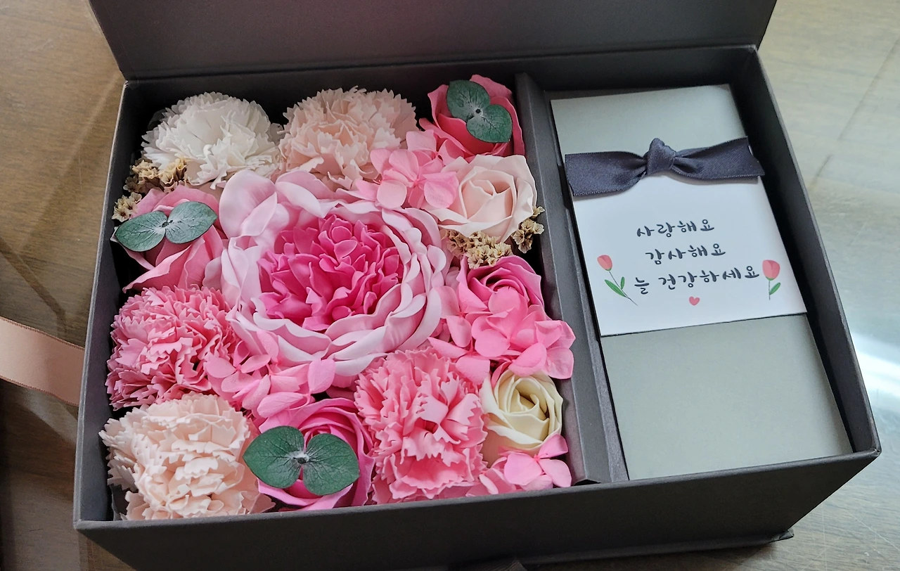 어버이날을 위해 미리 준비하는 것도 좋네요. 당일에 카네이션이 심어져 있는 화분을 사거나 꽃바구니를 사는 것도 좋지만, 시들어버리는 꽃보다는 오랫동안 장식할 수 있는 관상용 비누꽃도 화사하고 예뻐서 괜찮네요.