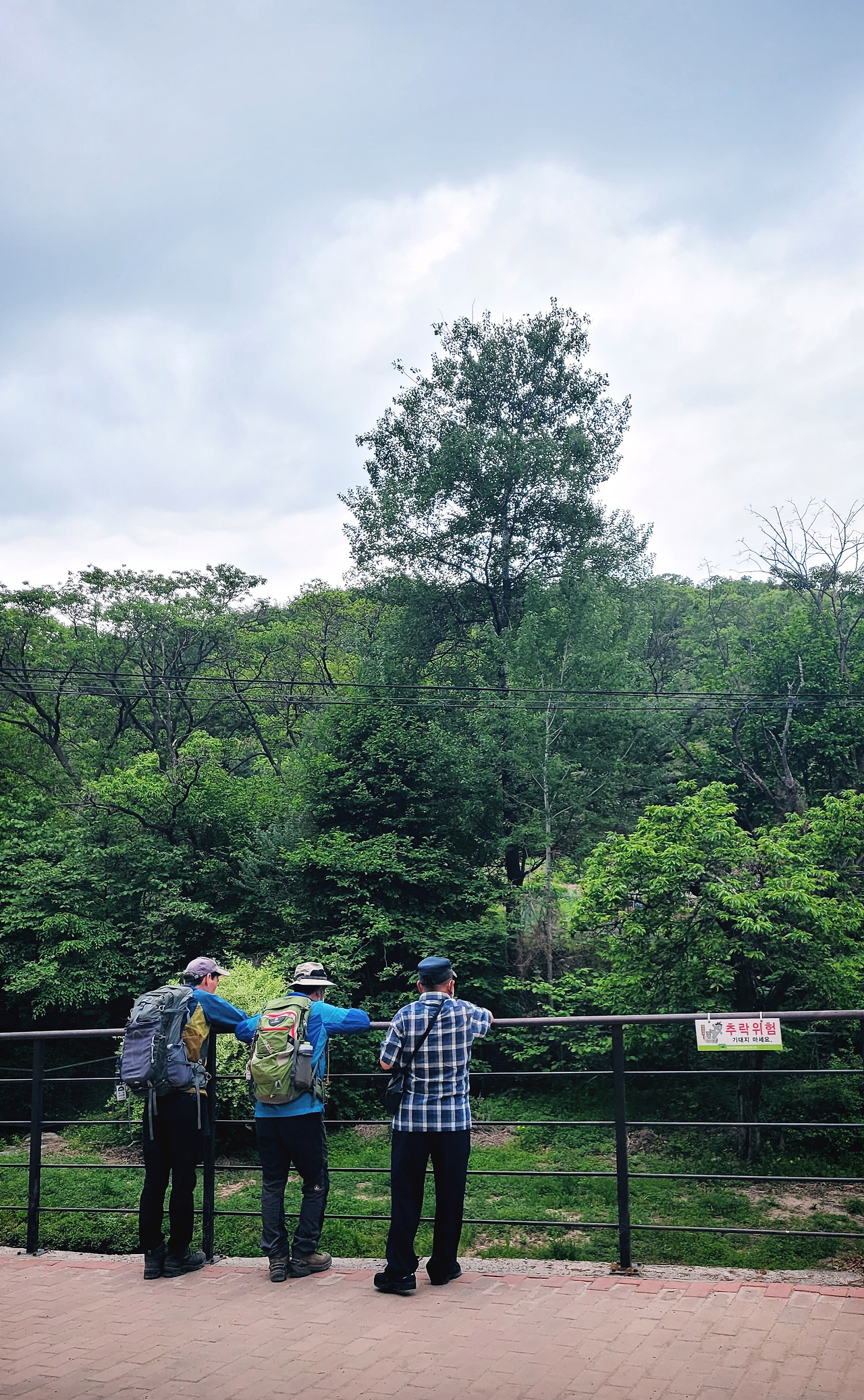 오후에 산에 올라 하루의 운동량을 채우고 하산했다. 날씨도 좋고 기분도 좋다. 즐거운 마음으로 걷다가 눈에 들어온 아름다운 모습에 웃음이 흘러나왔다. 나이 지긋하신 아저씨 세 분이 계곡 난간에 팔을 얹고 산을 바라보며 즐거운 대화를 나눈다. 대화 내용이 무엇인지도 모르는데 들려오는 웃음소리에 덩달아 기분이 좋아졌다.