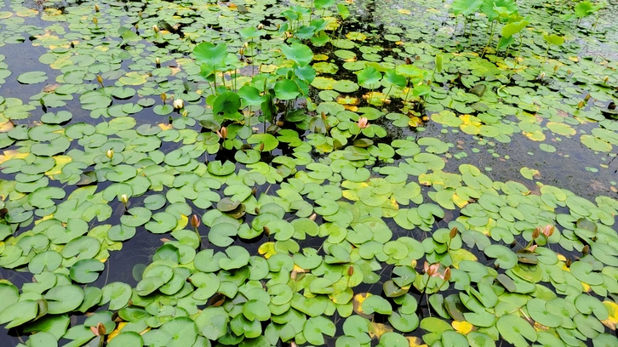 연못에 수련이 가득합니다. 개구리 왕눈이 개굴개굴 노래를 부르며 나올 거 같아요.