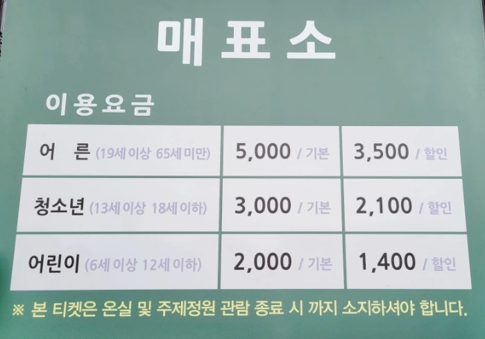 서울식물원 주제원 입장료 안내입니다.