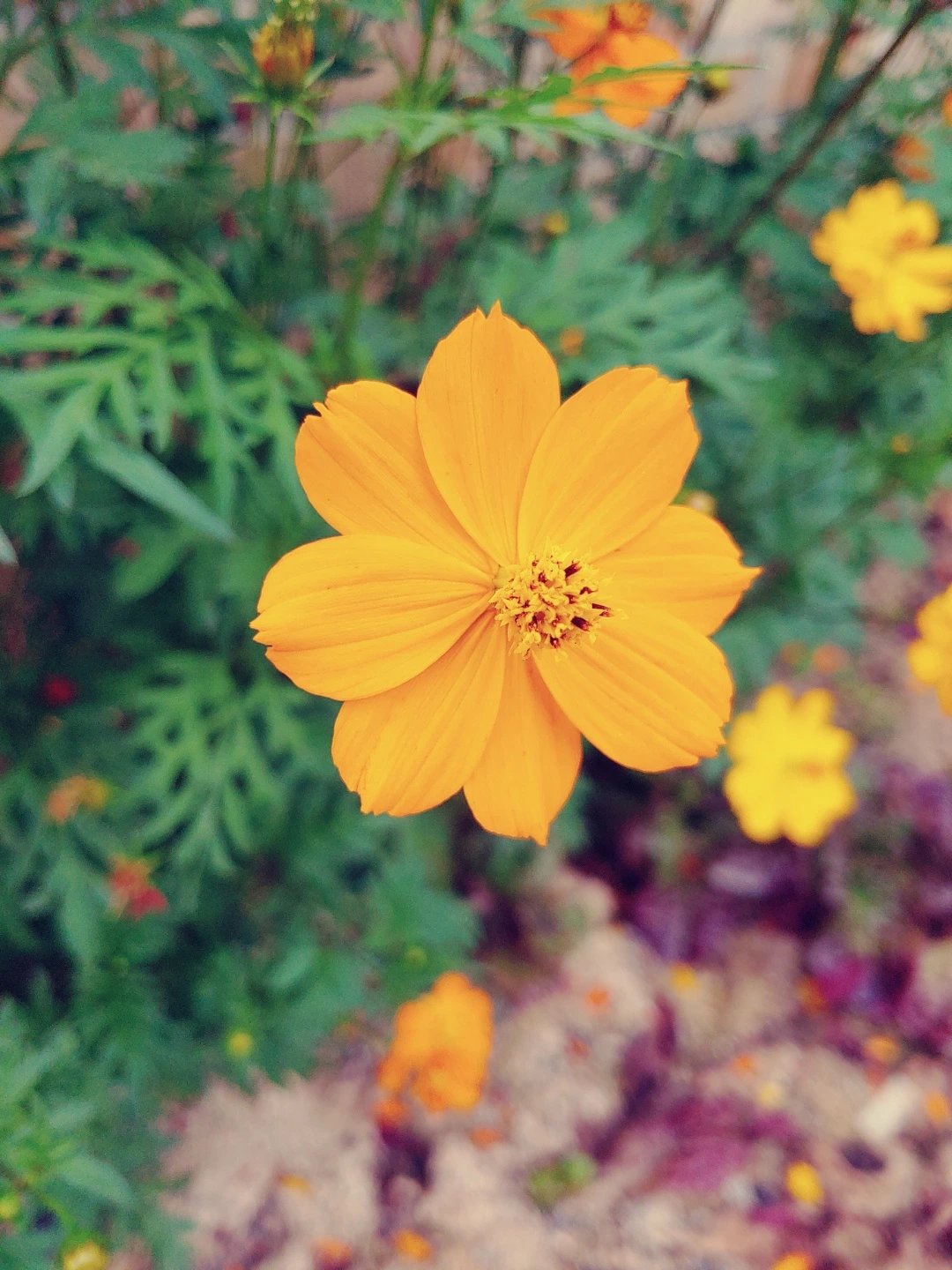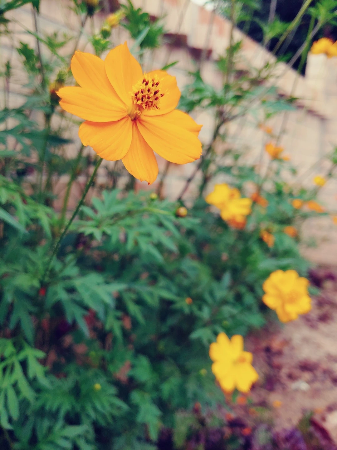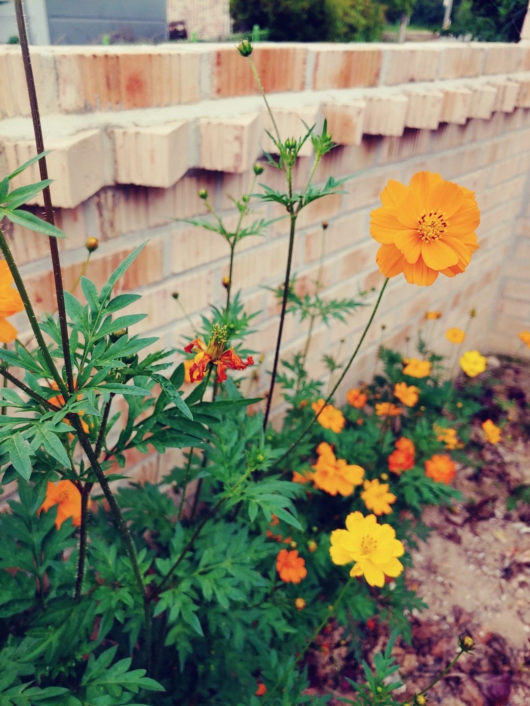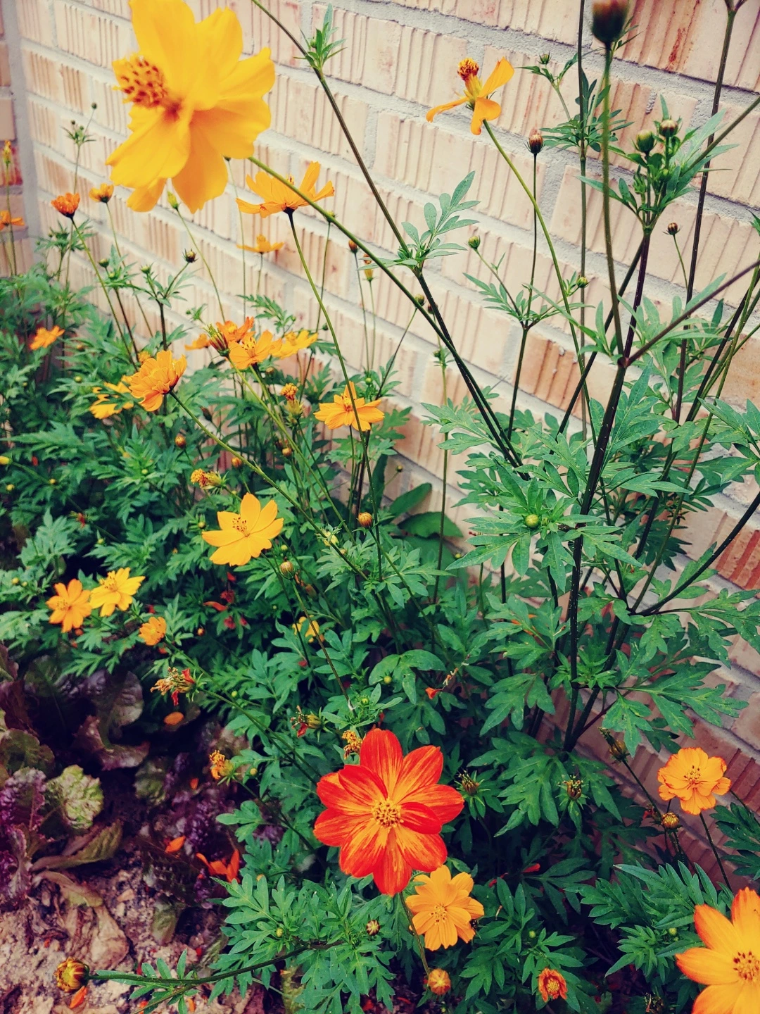 엄마의 꽃밭에 여름 코스모스가 피었습니다.