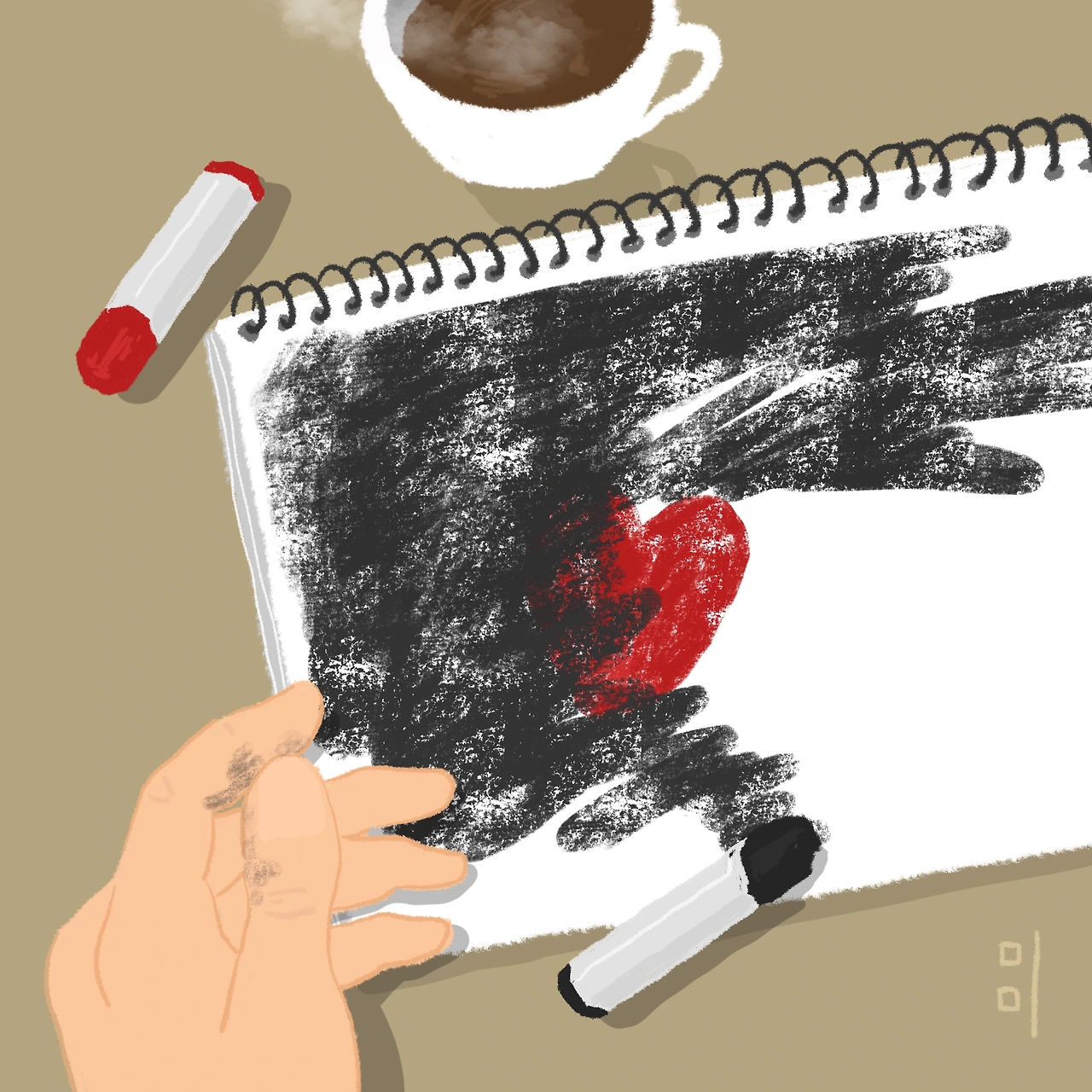 오늘 기분은 어때요. 많이 힘들거나 그렇지는 않았죠. 그렇겠죠. 그렇다면 오늘은 편지 쓰기를 할 거예요. 알록달록 색들이 준비되어 있고요. 모든 색을 사용해도 좋아요. 좋겠어요. 행복했던 기억 사랑하는 것들을 적어보기로 하죠. 시작할게요.