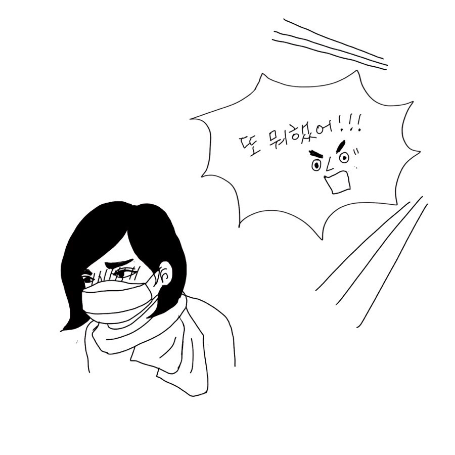 어쩔수 없이 마스크를 하고 !들어간다,