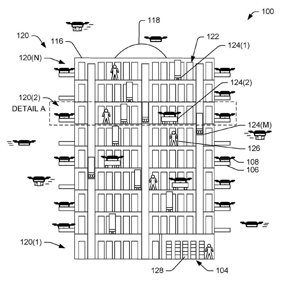 세계 최대 커머스기업 아마존은 2017년 10월 드론 배송에 관한 특허를 획득했습니다. [1] 전혀 놀랍지 않죠? 아마존은 이미 드론 배송 시스템에 관한 40여 개의 특허를 가지고 있으니까요. 하지만 <무인항공기를 위한 다층물류센터 Multi-Level Fulfillment center for Unmanned Aerial Vehicles >란 제목의 이 특허 문건을 들여다보면 몇 가지 흥미로운 점을 발견할 수 있습니다.