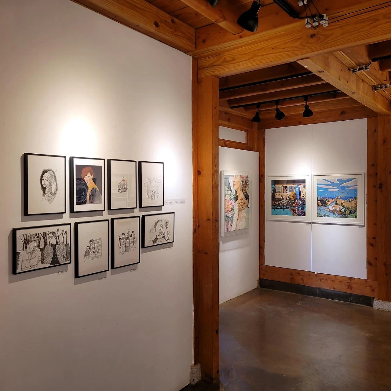지나가다 들를 일이 있으면 고즈넉한 한옥에 걸린 그림 보고 가세요. 도심 한가운데 있는 한옥의 정취만으로도 좋으실 거예요.