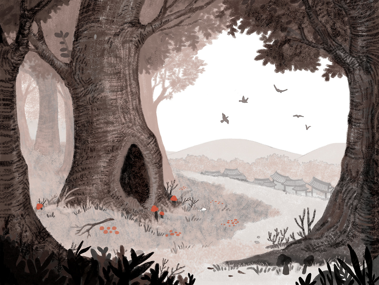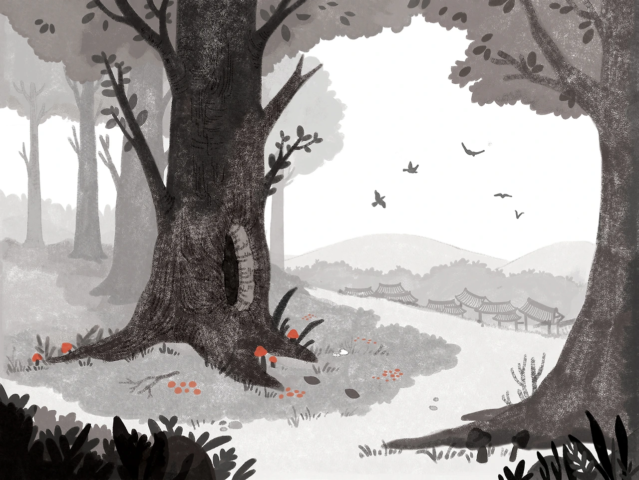 이 그림은 출판사 편집 과장님의 피드백대로 이야기의 첫 장면이 되었다. 이야기 속으로 끌어당기는 듯한 연출이 썩 마음에 든다. 무엇보다 내가 나의 한계를 넘어 발전했다는 승리감으로 기쁘다.