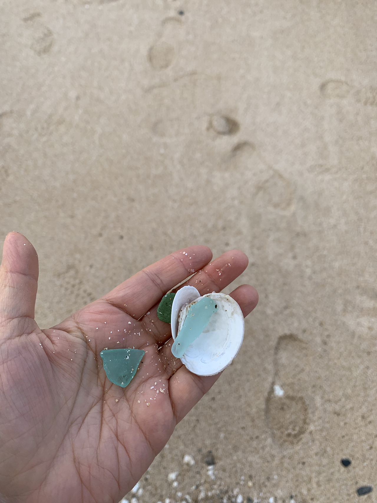 바다 유리를 주웠다. 잔뜩 주워볼 심산이었지만 생각보다 찾기 어려웠다.