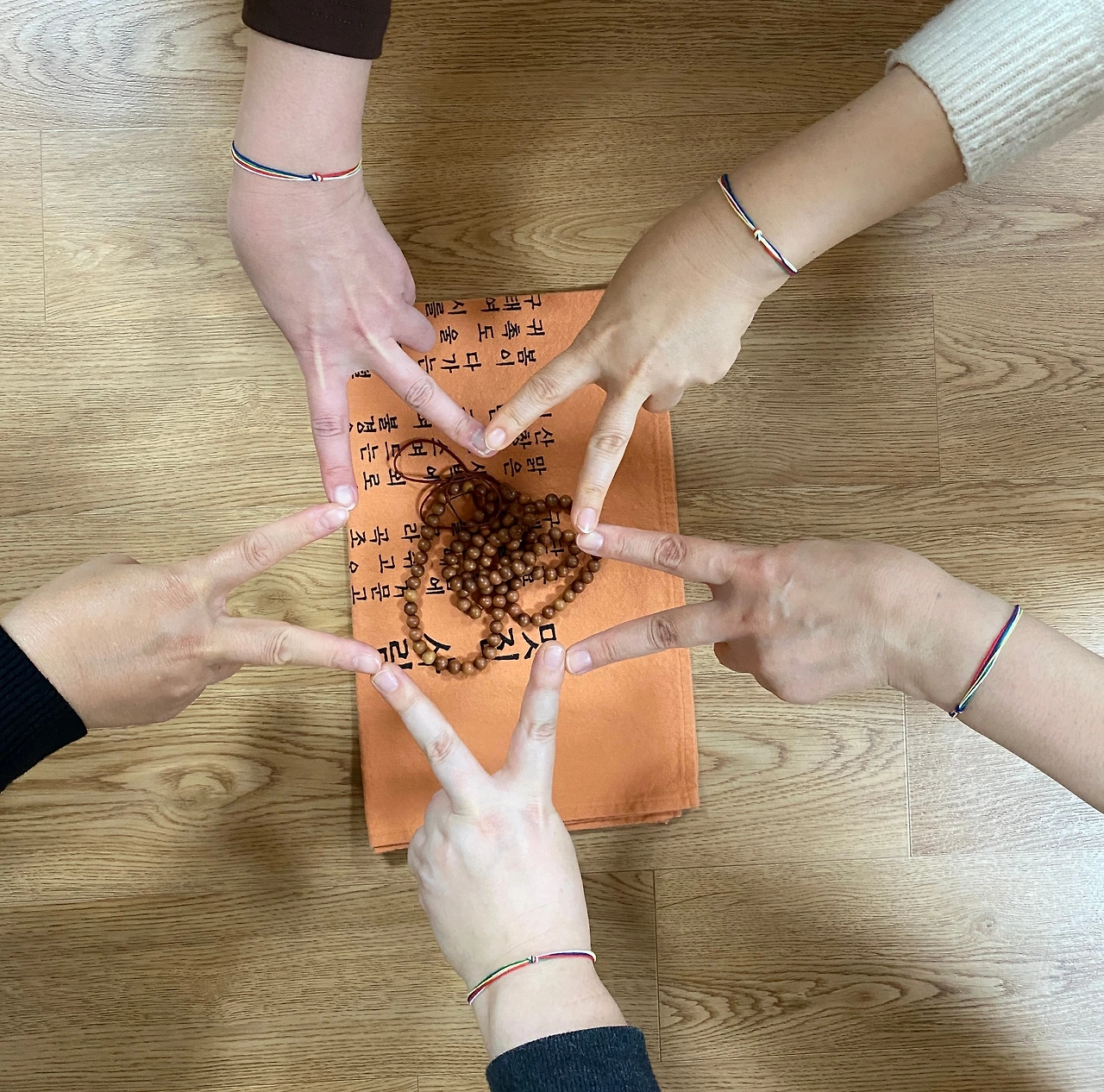 묘향스님이 선물로 주신 오색 팔찌를 차고 찍은 기념 사진.