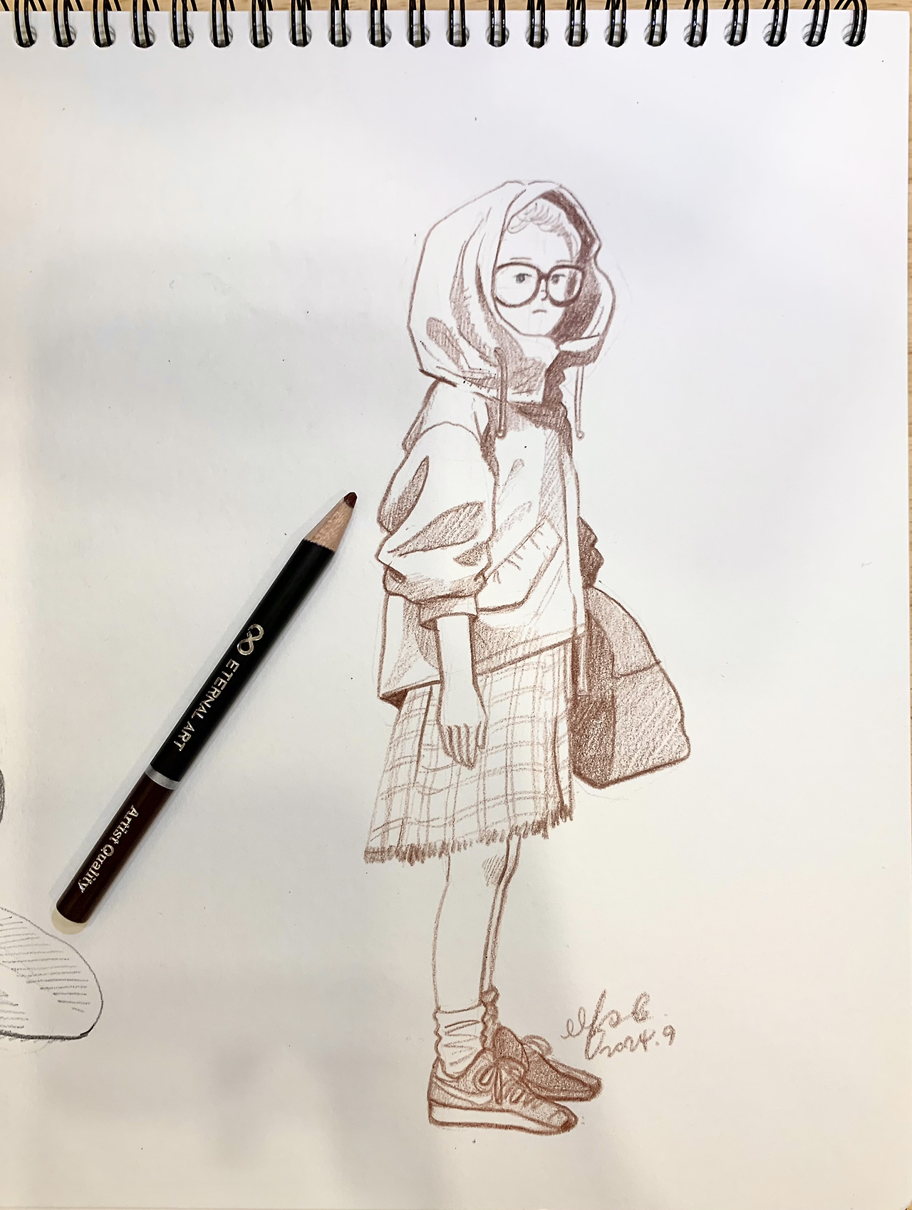 오후 3시, 우리들은 각자의 공부할 거리를 들고 동네 카페에 갔다. 나는 굳은 손을 풀기 위해 그림을 그렸다. 그림을 그리는 순간에는 마음이 평화로웠다. 나는 그림을 그리며 다음 작업의 실마리를 찾기 위해 곰곰이 생각하는 나를 느꼈다.