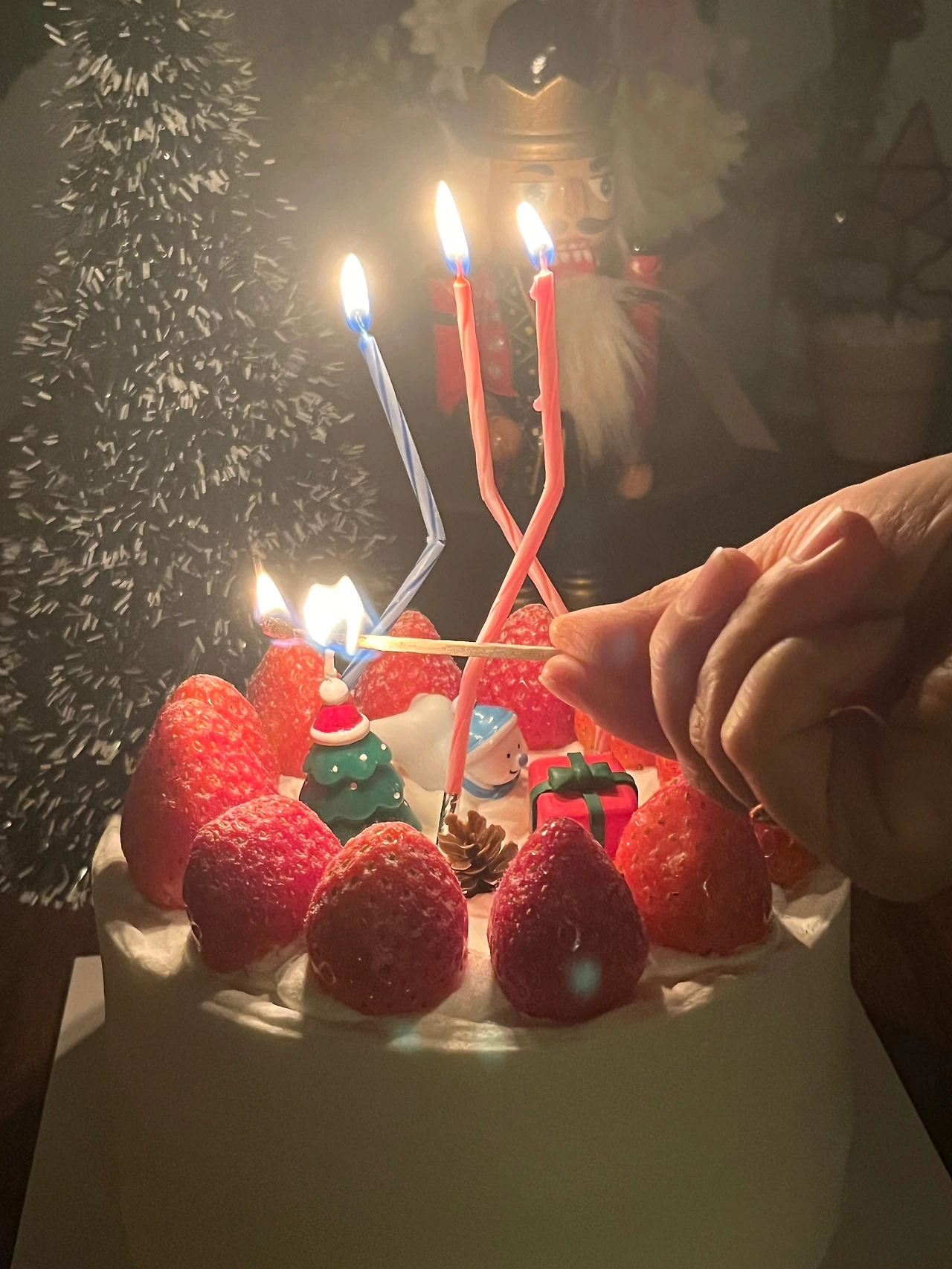 딸은 남자친구와 크리스마스를 보내기 위해 일찌감치 나갔고, 아들과 나는 케이크에 촛불을 붙이고 메리 크리스마스를 외치며 박수를 쳤다.