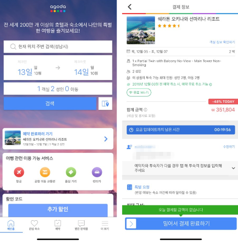 꽤 오래전부터 호텔 예약 시 아고다를 사용해오고 있습니다. 이런저런 사건 사고도 있었다고 들었습니다만, 제 경우에는 한 번도 불미스러운 일이 없었고 여러모로 편한 기능이 많아서 다른 여행 앱이나 예약 사이트로 갈아타지 않고 있습니다.