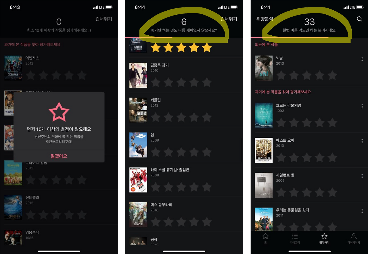 이게 하다 보면 은근히 재밌습니다. 시간 가는 줄 모르고 별점을 매기고 있는 나를 발견하게 되죠. 더 재밌는 건 별점 매긴 수가 늘어갈수록 시기적절하게 칭찬도 해준다는 겁니다. 33개 쯤하고 나면 우리 엄마도 잘 안 해주던 칭찬도 해주고…그래서 더 신나고….