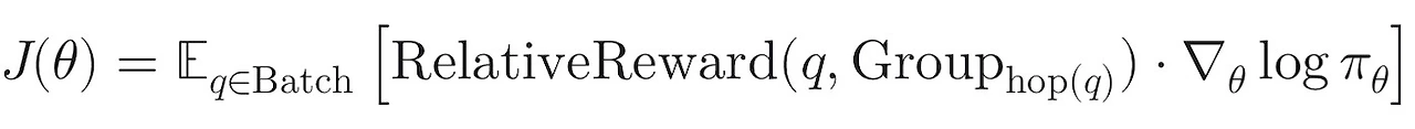 핵심은 보상을 절대적인 수치가 아니라, 같은 Hop 수를 가진 그룹 내에서의 상대적 수치로 치환하여 AI가 "아, 이 정도 난이도에서는 이 방법이 제일 좋구나!"를 명확하게 깨닫게 만드는 데 있습니다.