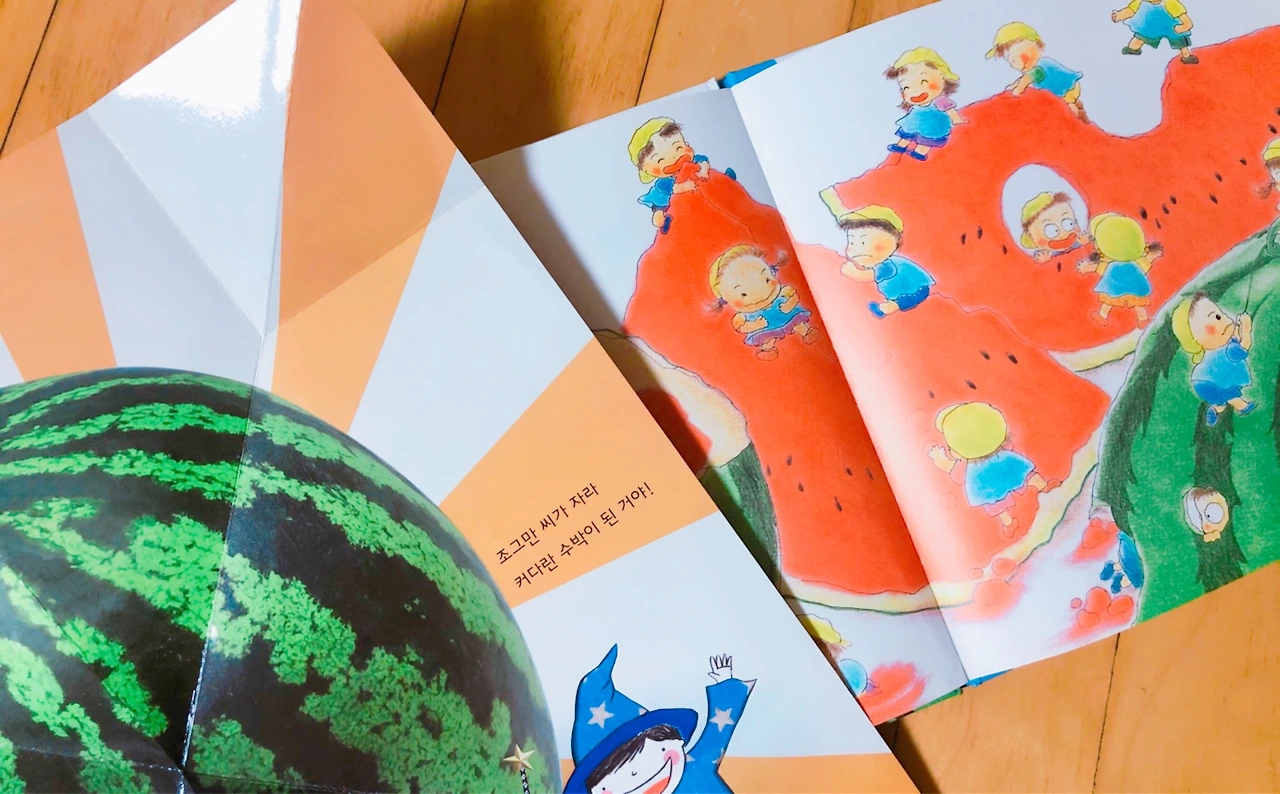 미국 수박의 엄청난 장점 하나는 수박에 씨가 없다는 건데 아이들에게는 서운한 일이었다. 자연관찰책 수박 편 마지막 페이지를 보면 다 같이 얼굴에 씨 뱉기 게임을 하라고 되어있는데 뱉을 씨가 없기 때문이다. 한국 동화책에는 수박씨가 흔히 나오다 못해 애들이 수박을 놀이동산 삼아 놀다가 수박씨를 심으러 가기도 하는데 빨갛기만 한 수박 속이 아이들 입장에서야 얼마나 허전했을까.