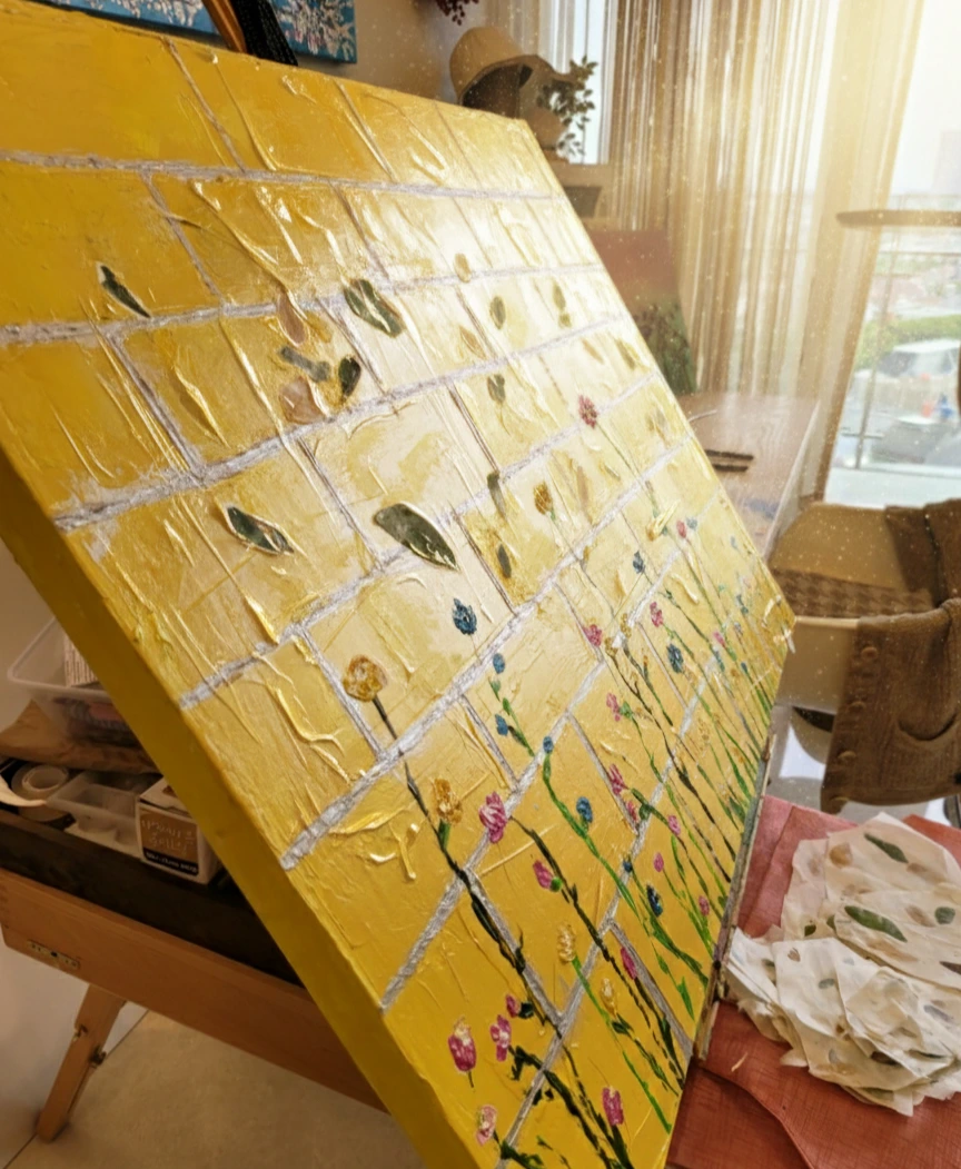 환하고 따스한 노란 담벼락을 벽돌 모양으로 세우기로 했다.