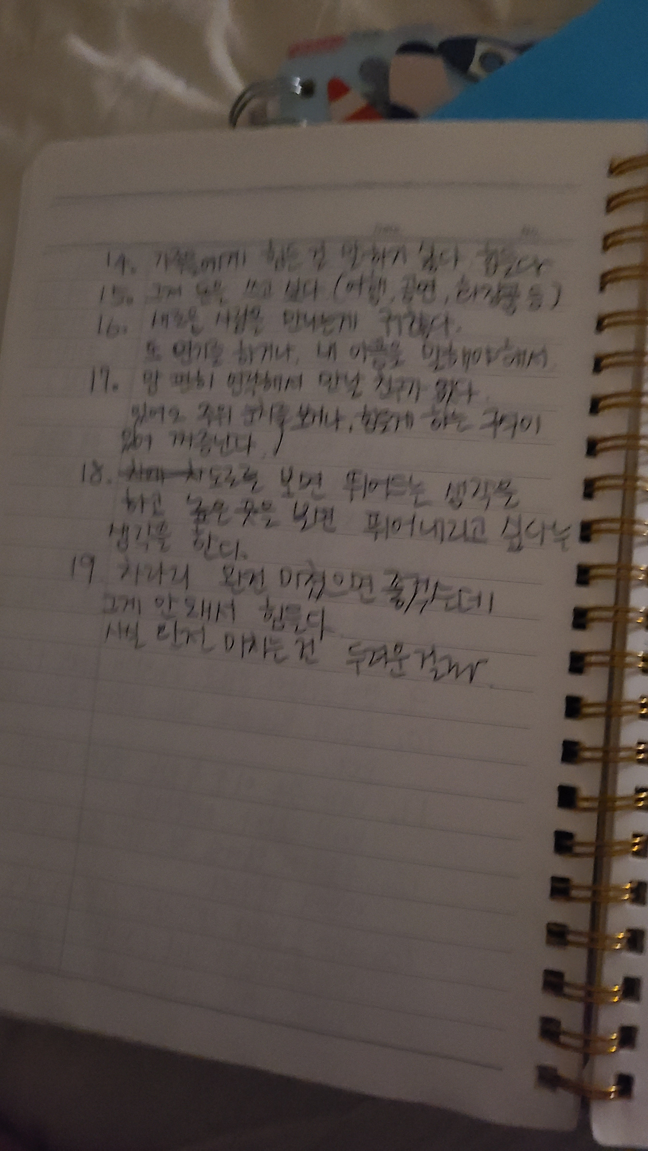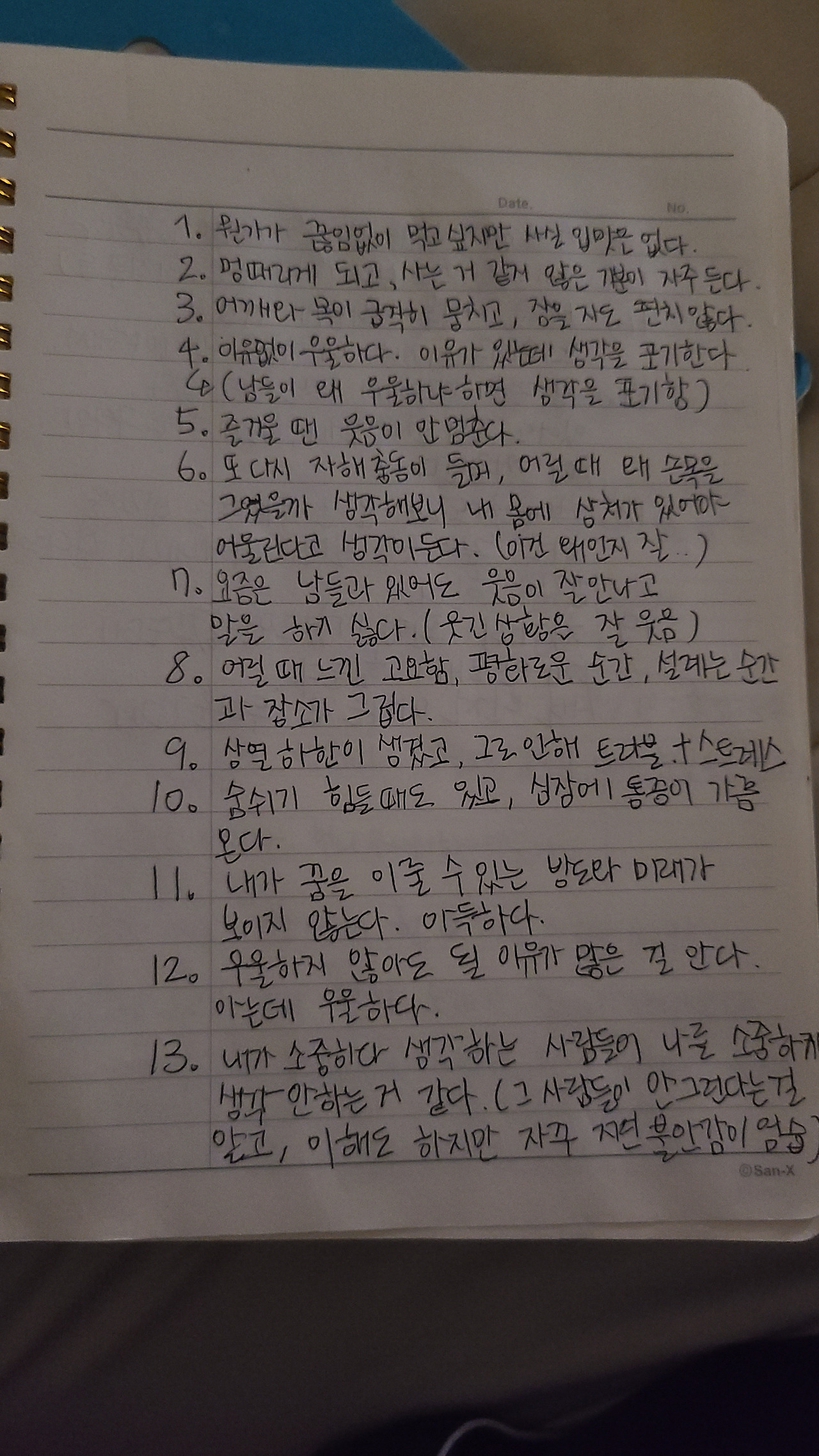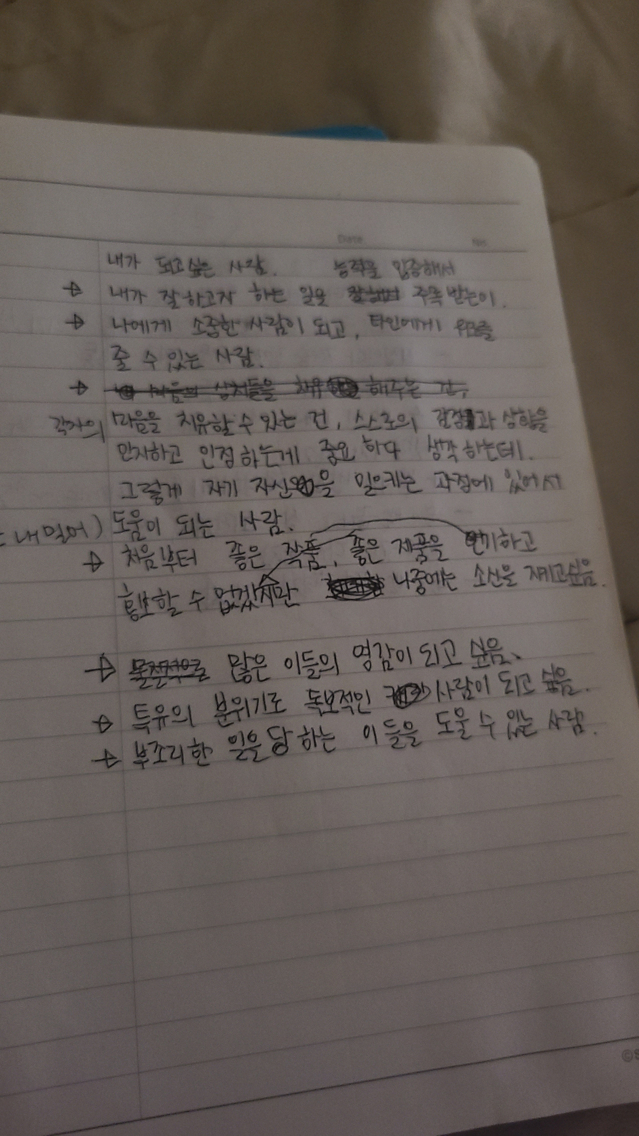 아주 오랜만에, 그리고 '또' 눈물을 흘렸다. 원체 눈물이 많은 성격이기는 하다. 그런데 오늘 흘린 눈물은, 최근까지 흘린 눈물처럼 텅 빈 눈물이 아니라 진짜 가슴속부터 흘러내리는 듯한 눈물이었다. 20살 때 포기했던 꿈을 다시 취미로 시작해보자! 해서 갔던 뮤지컬 학원에서 독백 연습했던 게 어느 작품이었던 것인지 너무 찾고 싶어서 내 추억 박스를 뒤적뒤적했다. 그 독백은 아이를 잃은 것에 대해 절실하고, 동시에 절망적이고 회한이 깊이 담긴 대사였는데 학원에서 연습실에서 혼자 연습을 하다가, 너무 몰입을 한 나머지 태어나서 한 번도 느껴본 적 없던 모성애를 느끼며 내게는 가져본 적도 없는 아이를 그리며 눈물을 뚝, 뚝. 흘리며 대사를 쳤던 게 기억이 난다. 그리고 이내 깨달은 건 그 아이는 '나'였고. 그때 나한테 할 말이 있어 온 입시반 언니 두 명이 집중한 나를 보고 그냥 갔던 것도 알았으면서 무시한 채로 집중했었던 대사였기에 그 대본을 뽑은 게 어딨지 찾다 보니 자연스레, 내가 꿈이 가득 찼던 그리고 우울증에 심하게 시달려왔던 그때의 노트들을 보고 말았다. (사실 이게 목적이었는데 찾지도 못하고 삼천포로 빠져버렸다.)