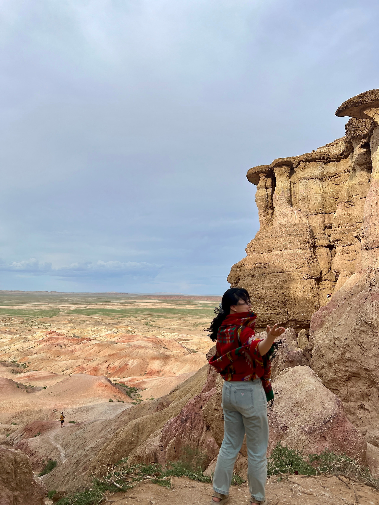 카페에서 한국어 수업과 즐거운 수다를 마치고 근처 마트에 들러 간단한 장을 봤다. 초콜릿과 사탕 같이 차에서 주전부리할만한 간식도 고르고 처음 보는 과일과 몽골 요거트 등 이것저것 담았다. 그러고 나서는 몽골의 그랜드캐년이라고 불리는 차가소브라가로 이동했다. 차강소브라가는 높이가 약 40m, 길이가 70km 정도인 엄청난 규모의 암석 지형이다. 이번 여행에서 가본 곳들 중 대자연과 압도라는 단어가 잘 어울리는, 가장 멋있는 곳이었다. 지금도 이곳에서 느낀 감동을 생각하면 가슴이 벅차오른다.